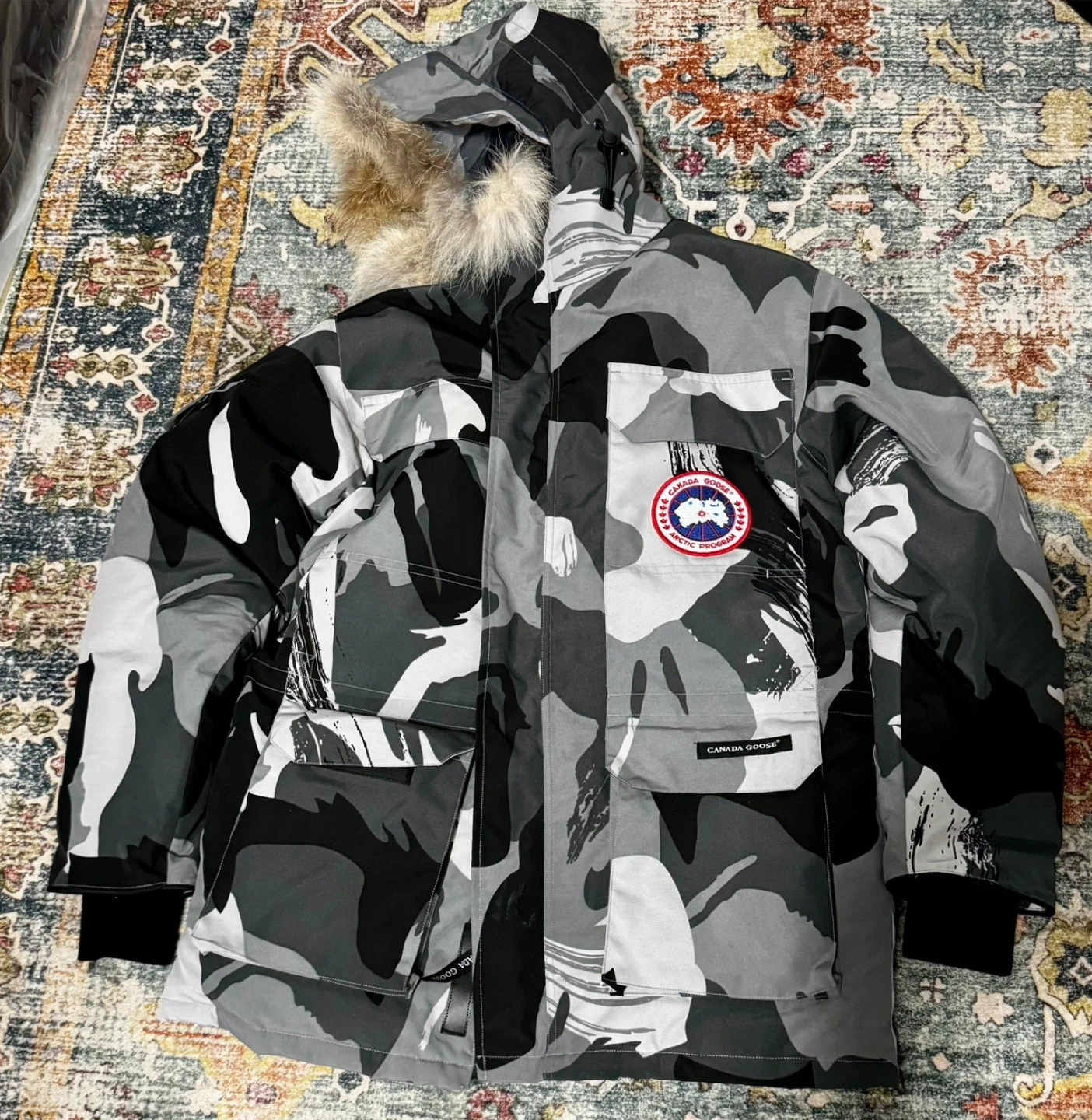 Selling a Canada Goose parka in a cool camo pattern! It's in great condition and super warm for those cold Canadian winters. Perfect for staying cozy and stylish! Selling due to size issue , Got as gift on my Birthday