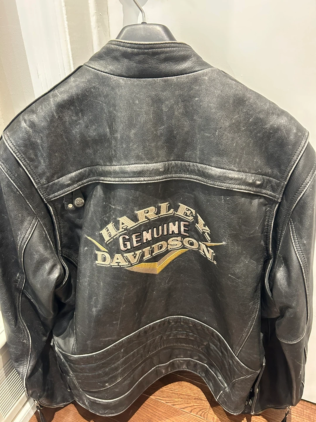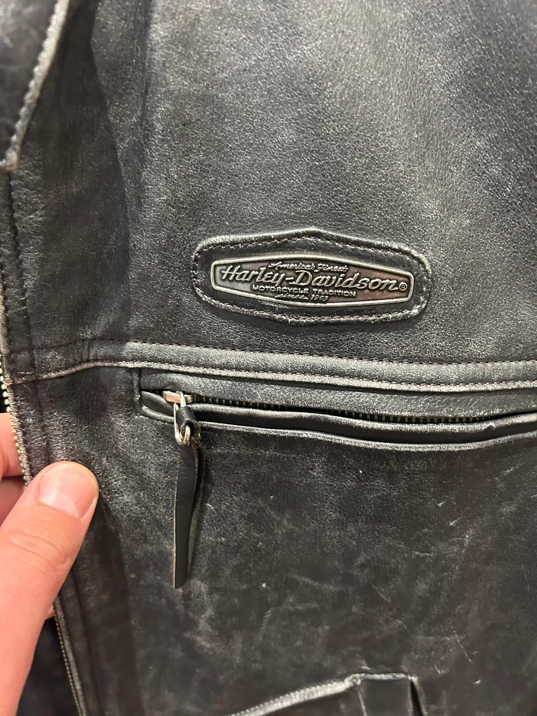 Vintage Harley Davidson Distressed Black Leather Jacket XL