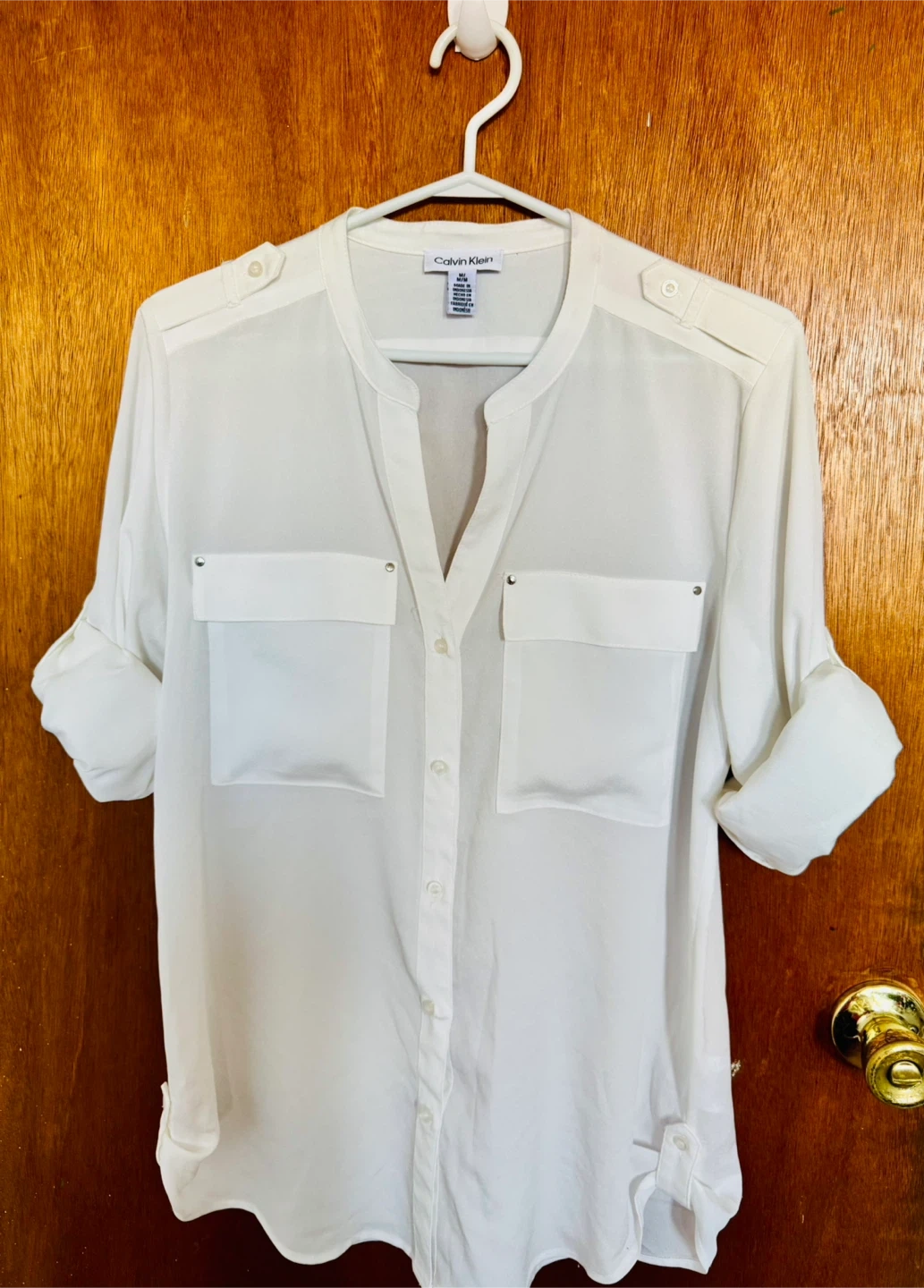 A lovely white Calvin Klein blouse in size medium. It's in great condition and ready for a new home! Perfect for dressing up or down, this versatile piece will be a great addition to your wardrobe
