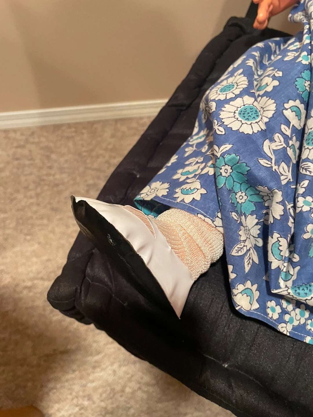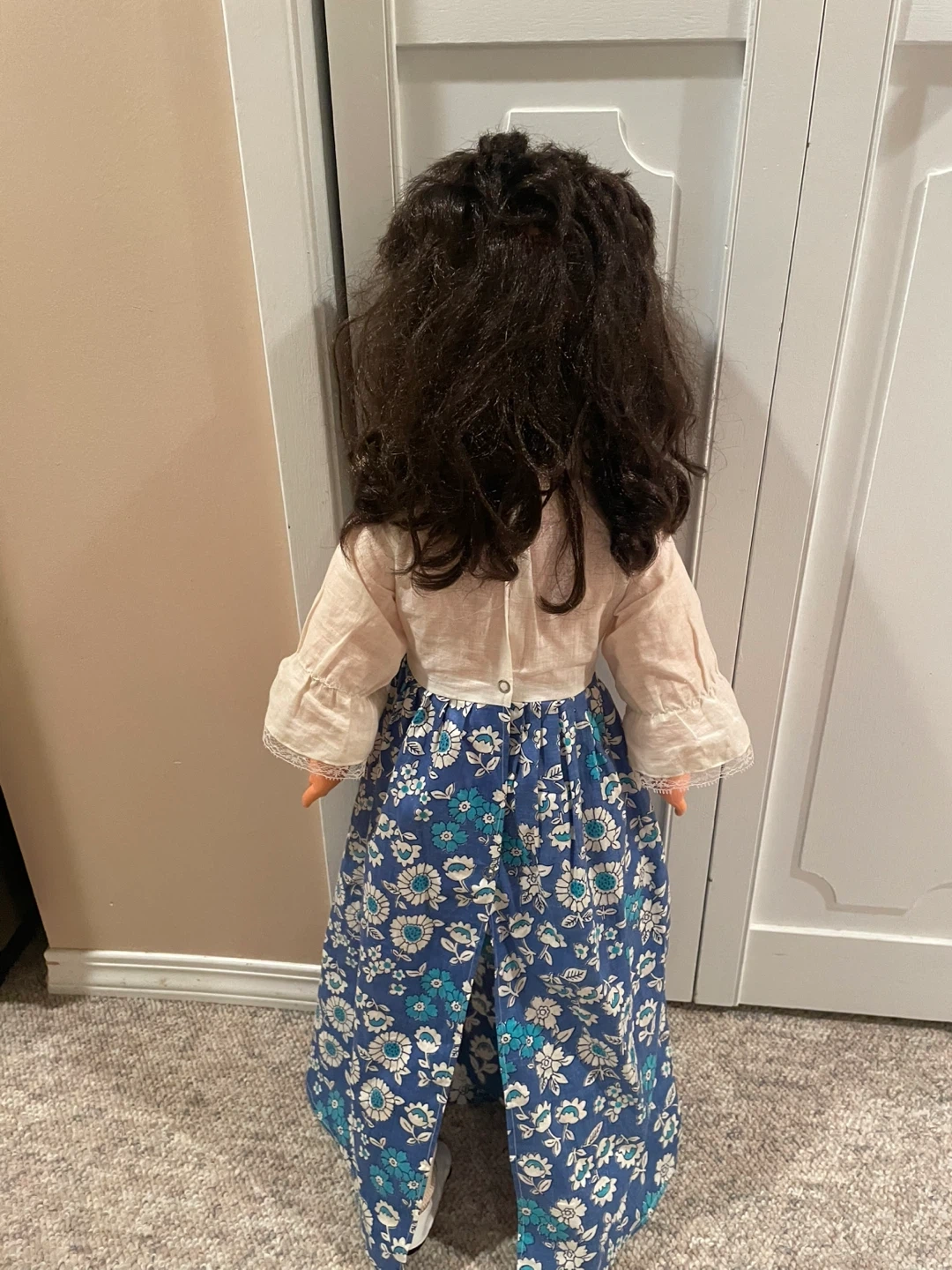 31” tall, sleeping eyes, brushable hair, and jointed at arms and legs. Dress, socks and shoes (some wear)