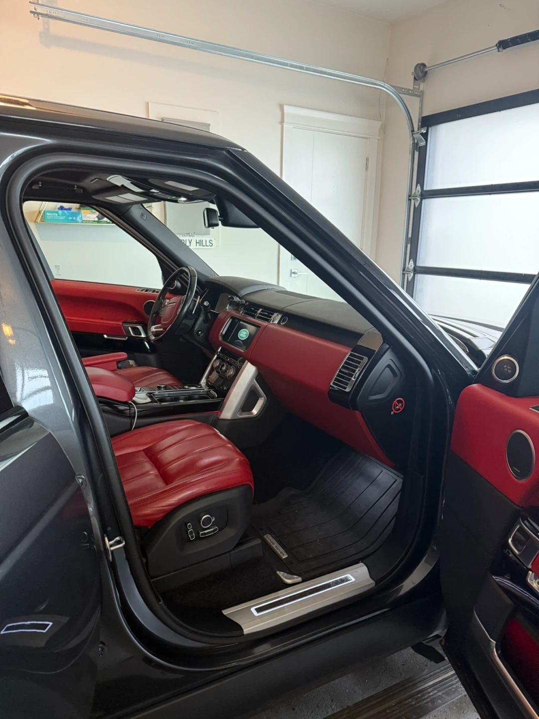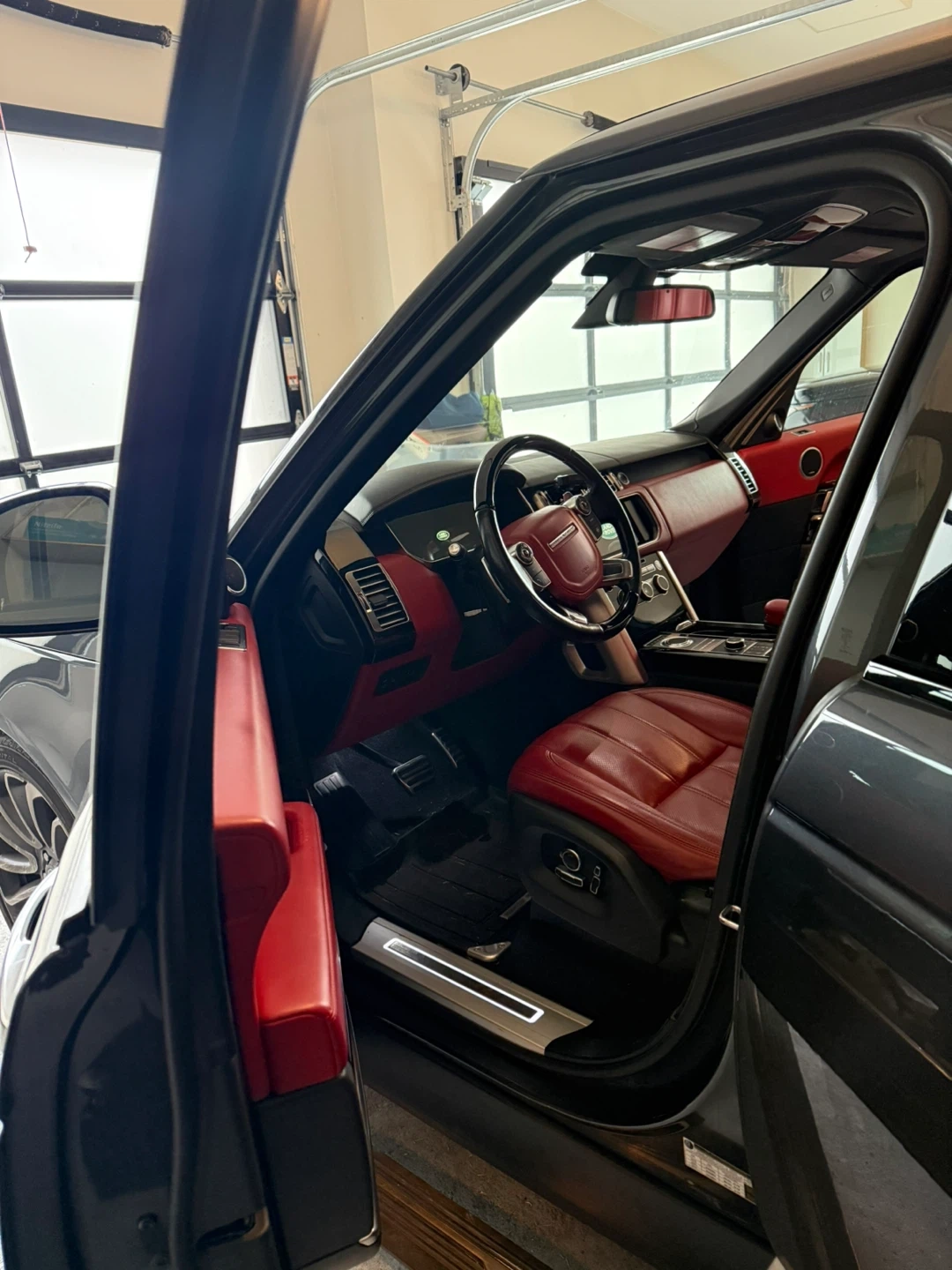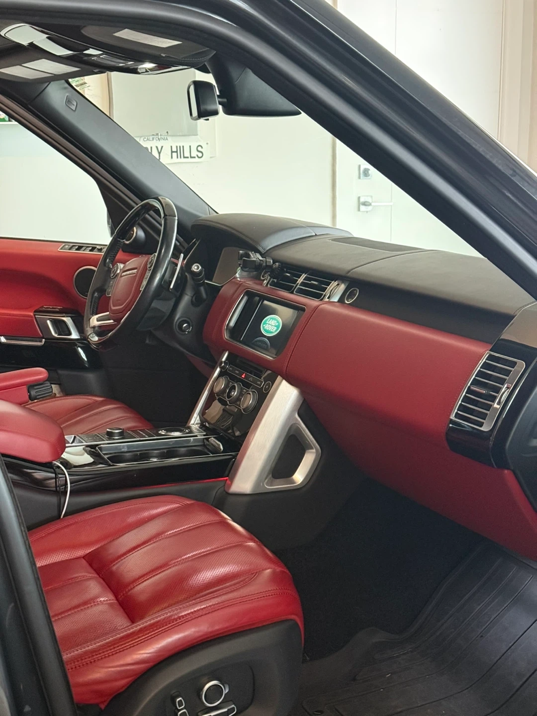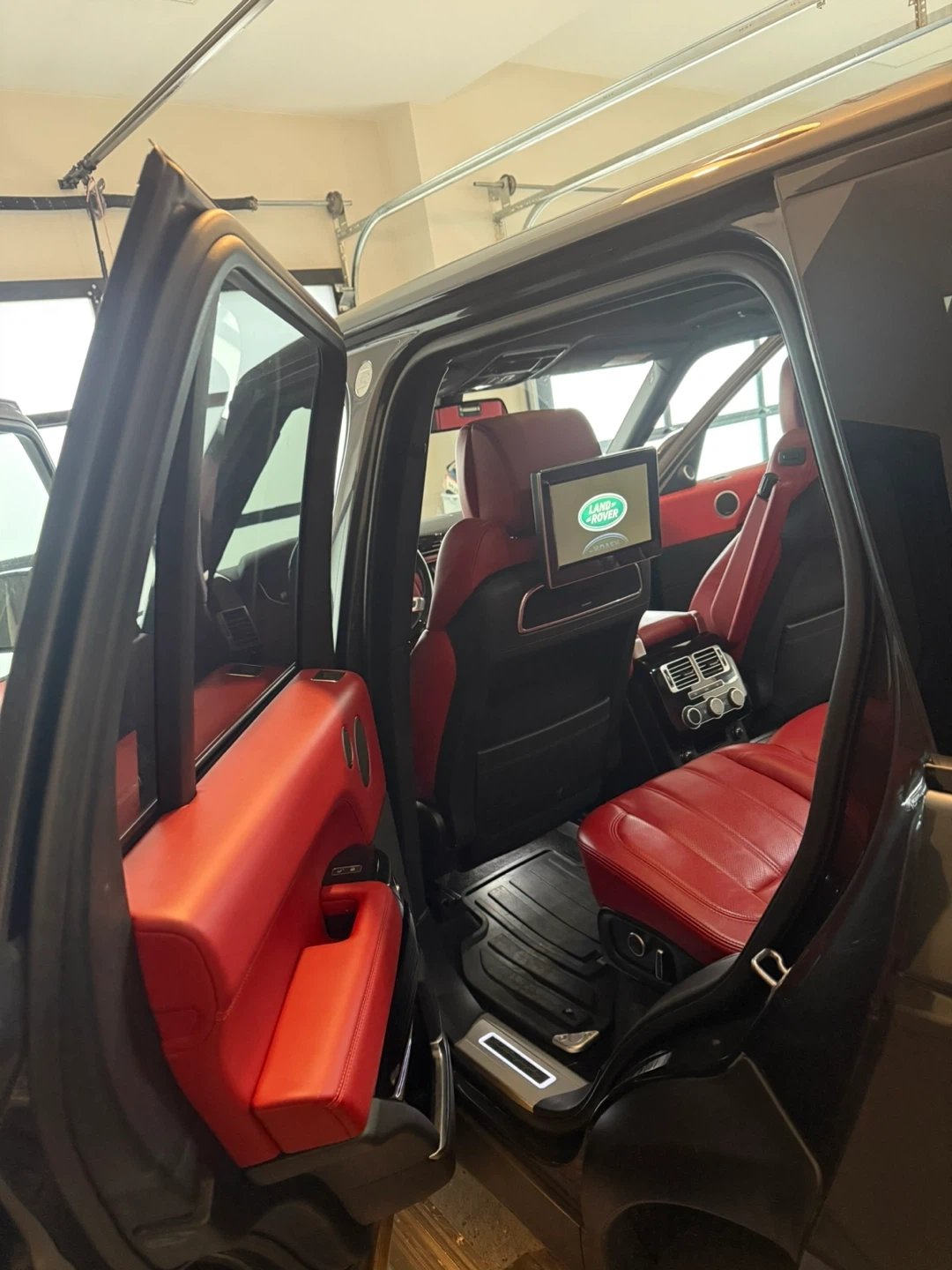 Selling a Range Rover autobiography year (2016)rear seat entertainment system. It comes with two screens mounted on the back of the front seats. The interior is red and black.