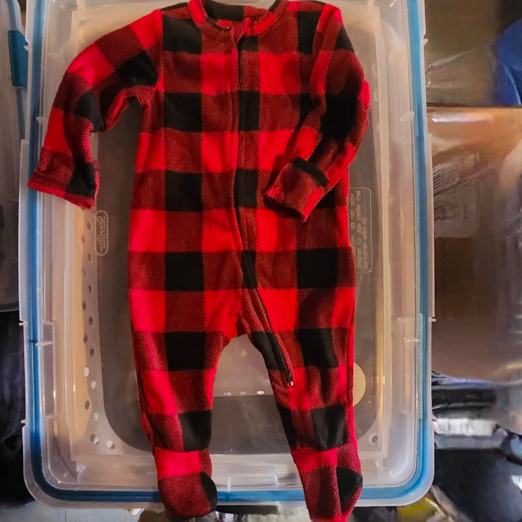 Cozy bundle of baby clothes for sale. There's an Old Navy plaid onesie, a Carter's 2-piece white outfit, and a white 3-piece hooded outfit. All sized 3 or 3-6 months. Perfect for your little one this holiday season.