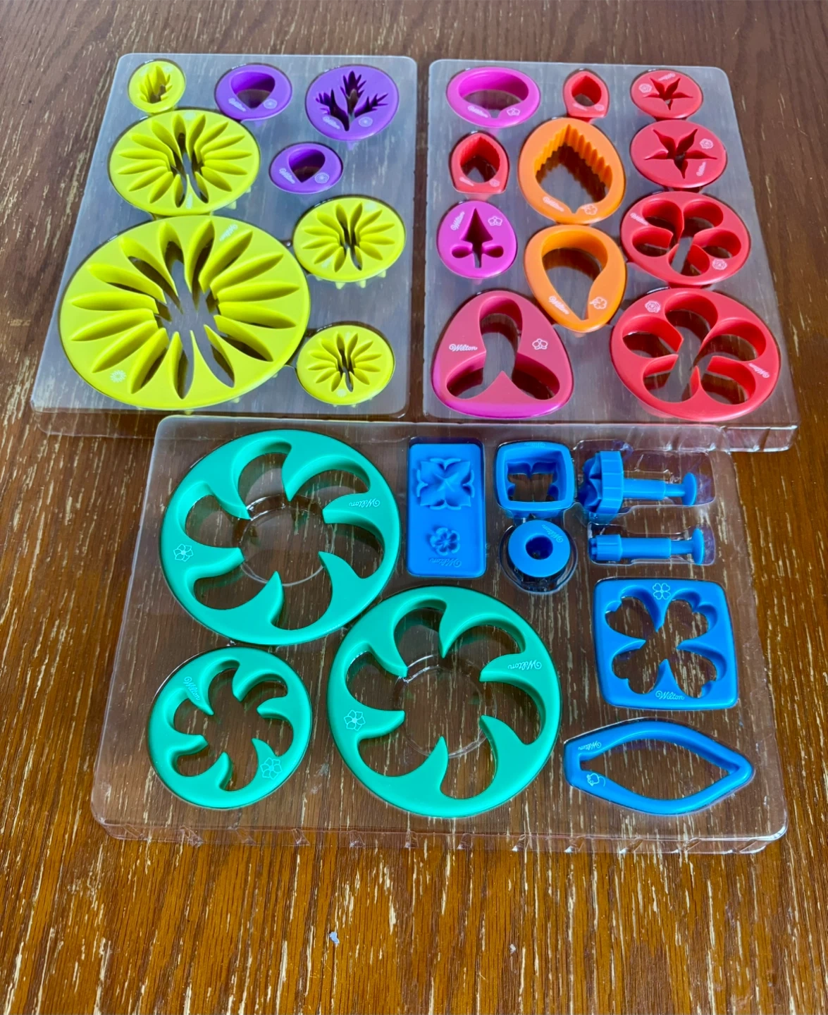 Selling creative with this Wilton gum paste flower cutter set! It comes with a variety of colourful cutters to help you make beautiful flowers for your cakes and other treats. The set includes a helpful instruction booklet to guide you through the process. Perfect for both beginners and experienced cake decorators!