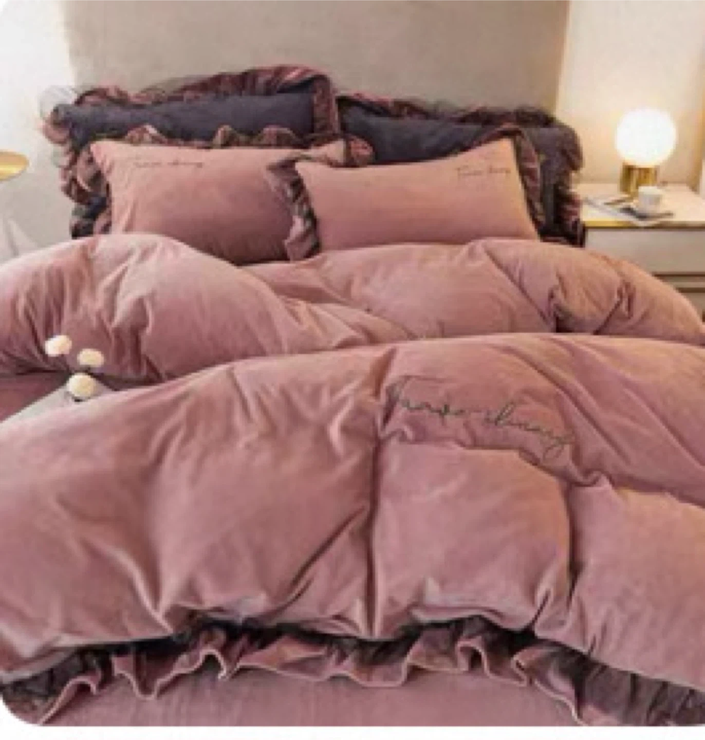 Smoke Pinky velvet Bedding Set 4pcs, king size