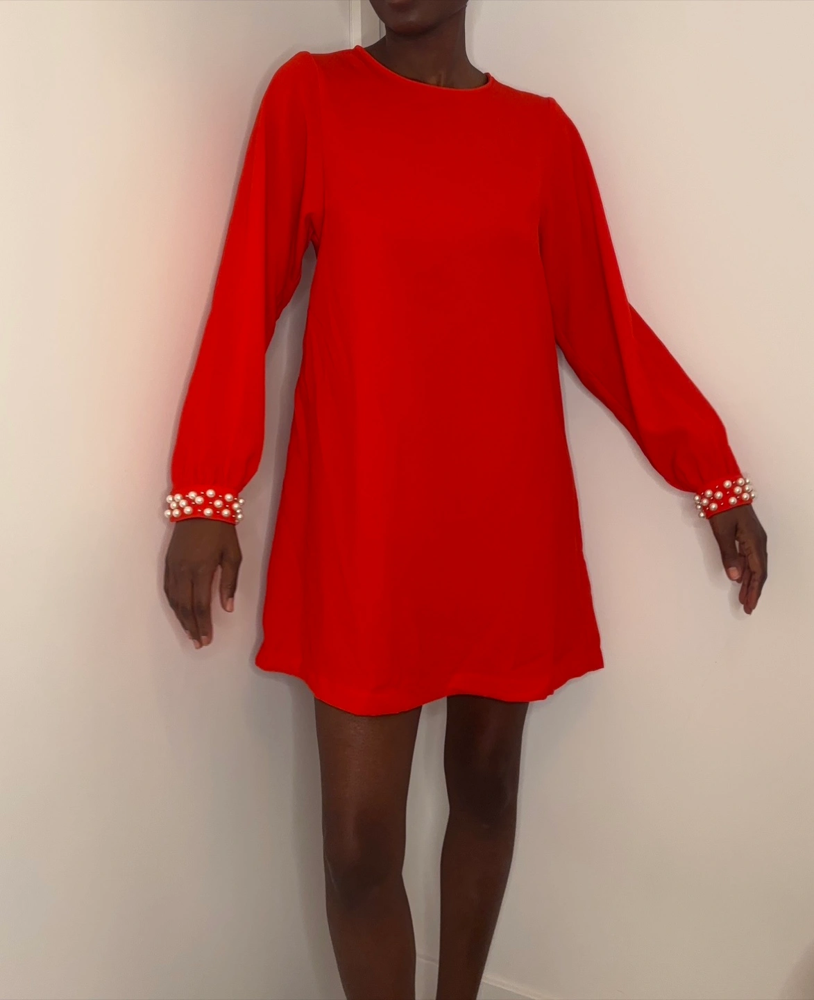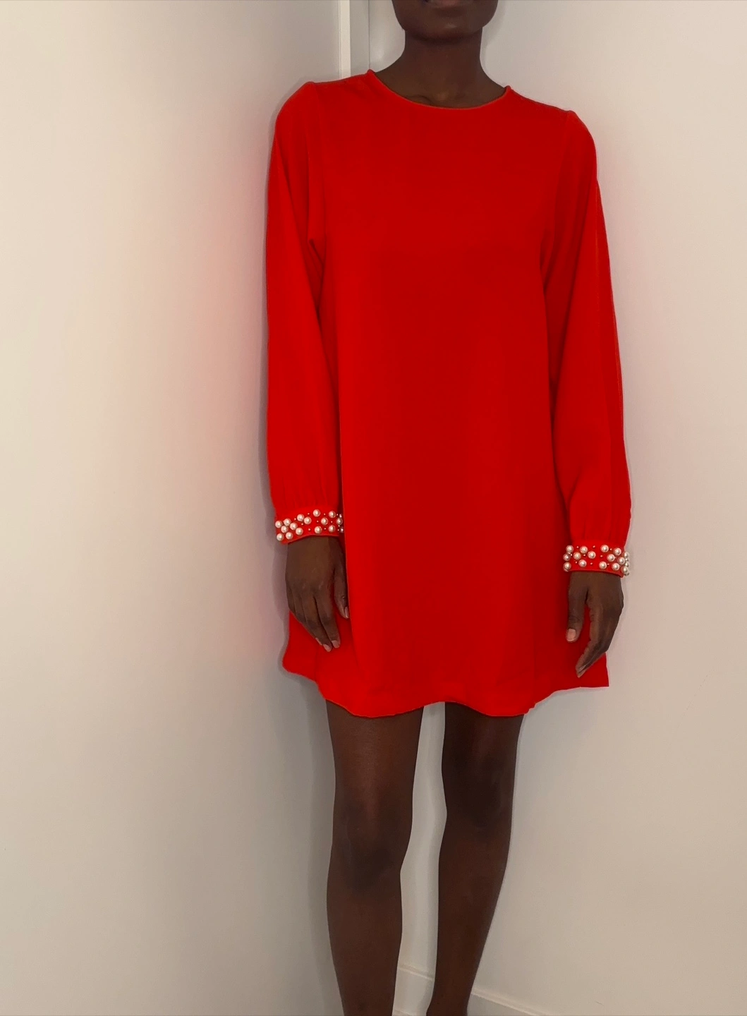 H&M Holiday Chic! Red Pearl Cuff Shift Dress (US 2)