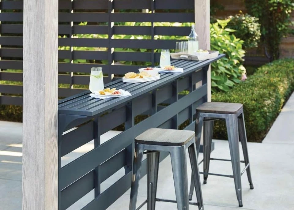 Customize the gazebo and the incorporated privacy screens and large serving shelf to fit your needs