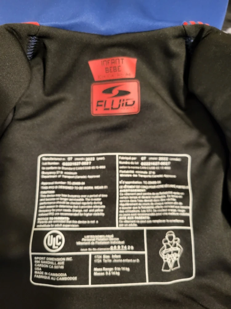 Fluid brand Infant Life Jacket 20-30lbs (New)