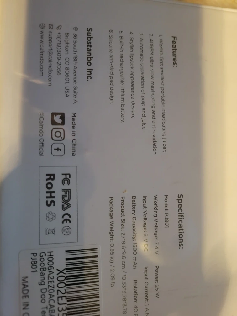 Selling a brand new CalmDo Portable Masticating Juicer, model PJ801! It's still in its original packaging.