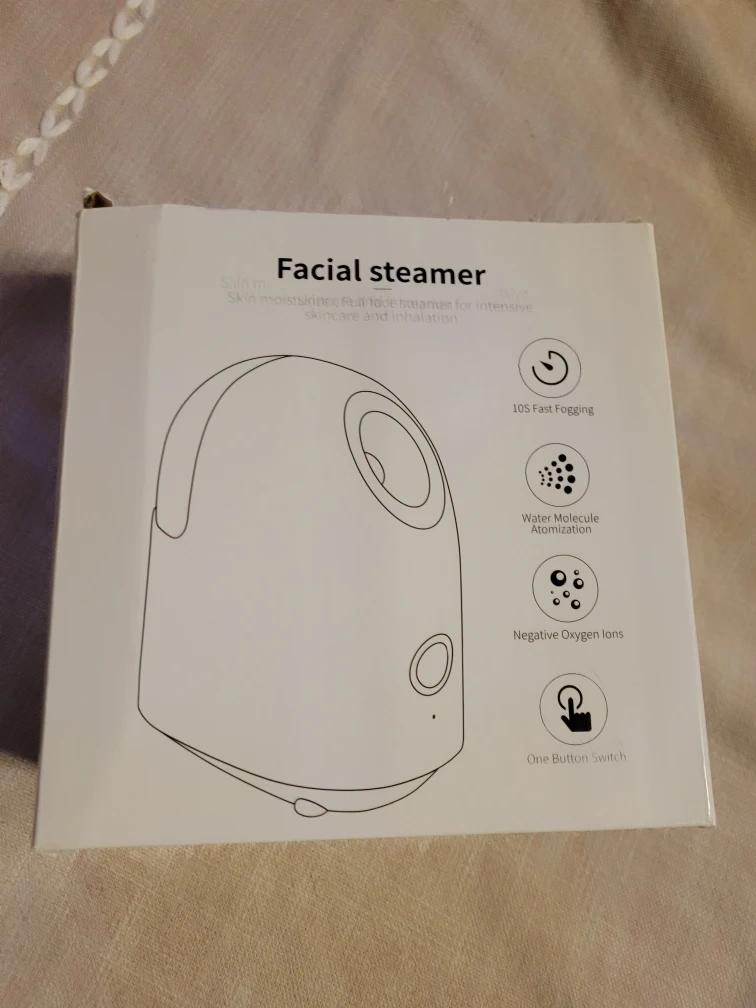 I'm selling a brand new facial steamer, still in its original box! It features 10s fast fogging and water molecule atomization. It also has negative oxygen ions and a one-button switch. The size is 6.5 x 4.3 x 6.5 inches (W x D x H). It's made of PC PP ABS material.