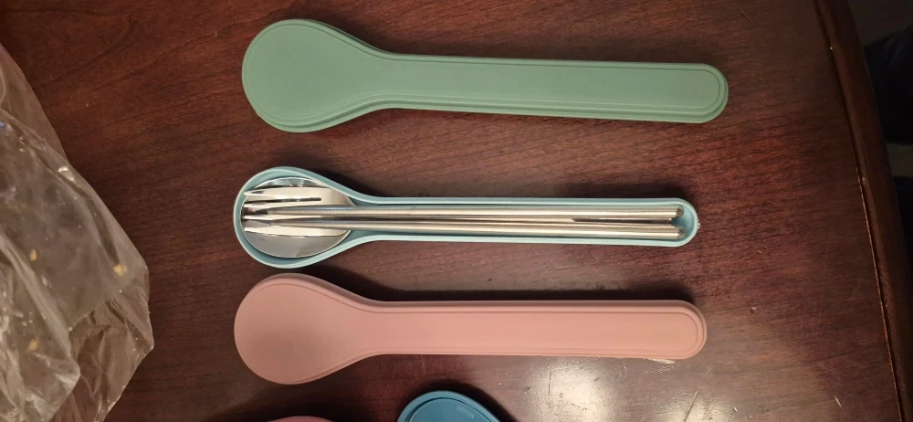 Selling a Bentgo Kids lunch box set! It comes with the lunchbox itself and three matching spoons. The lunchbox has a divided tray to keep food separate, and the spoons are in cute colours! $2 each
