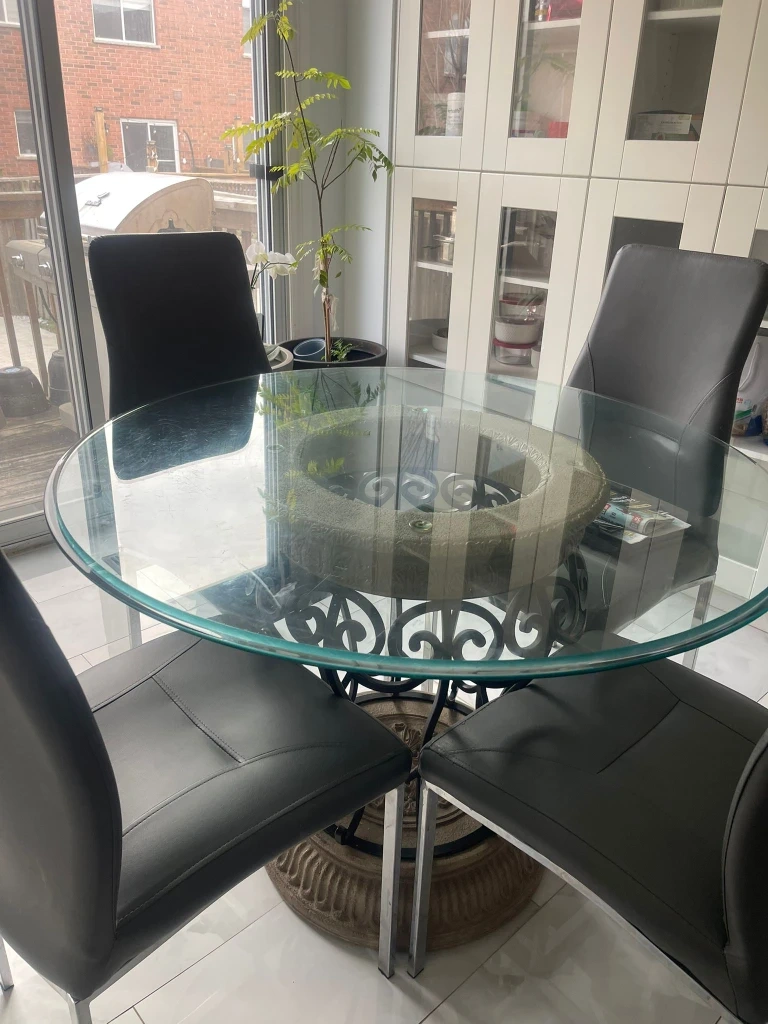 Glass Round Table & 4 Black Chairs