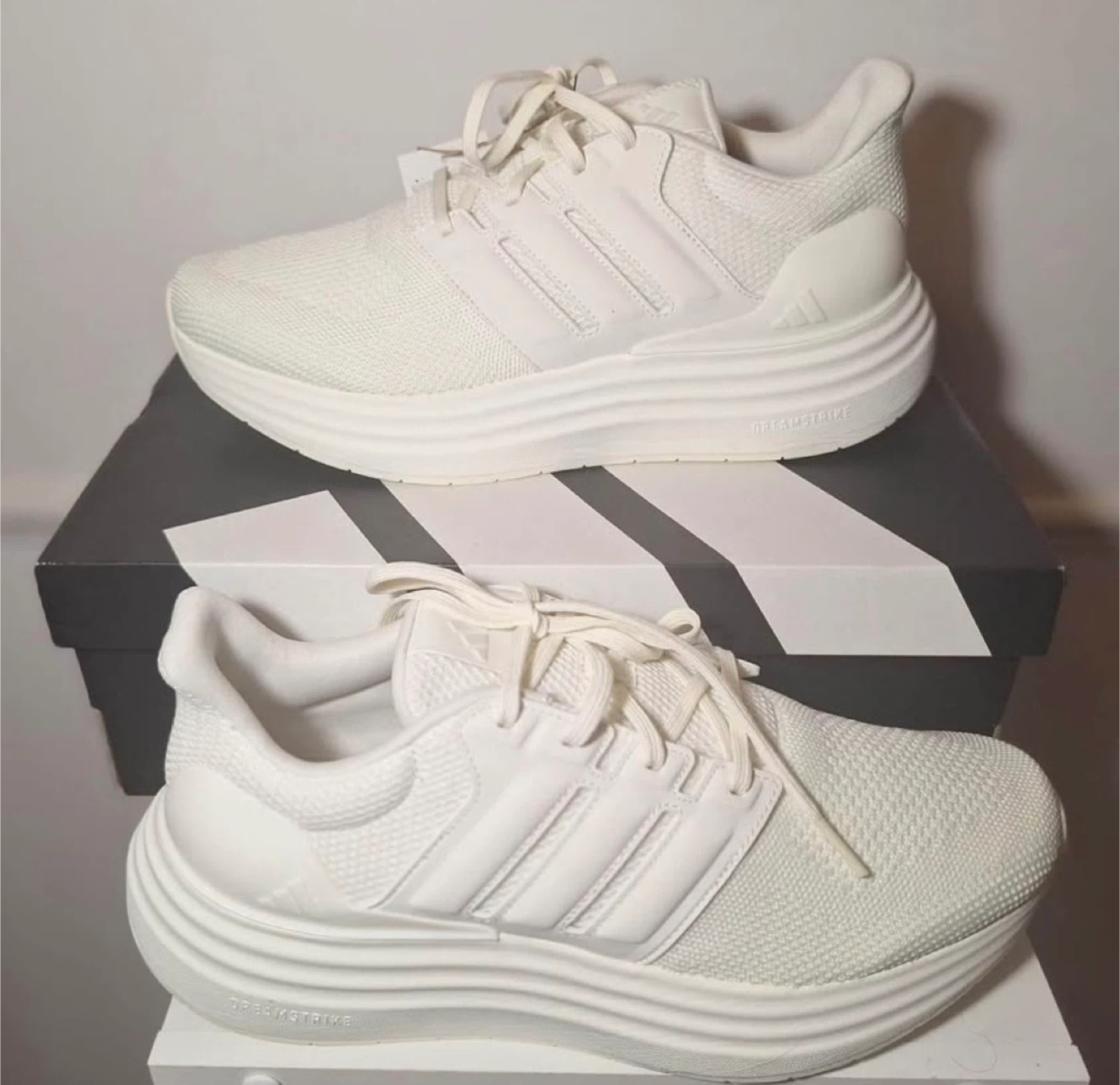 Selling a pair of Adidas Ultraboost Light sneakers in all white, size 8.5. These shoes are in great condition and doesnt come with the original box. Perfect for running or everyday wear!