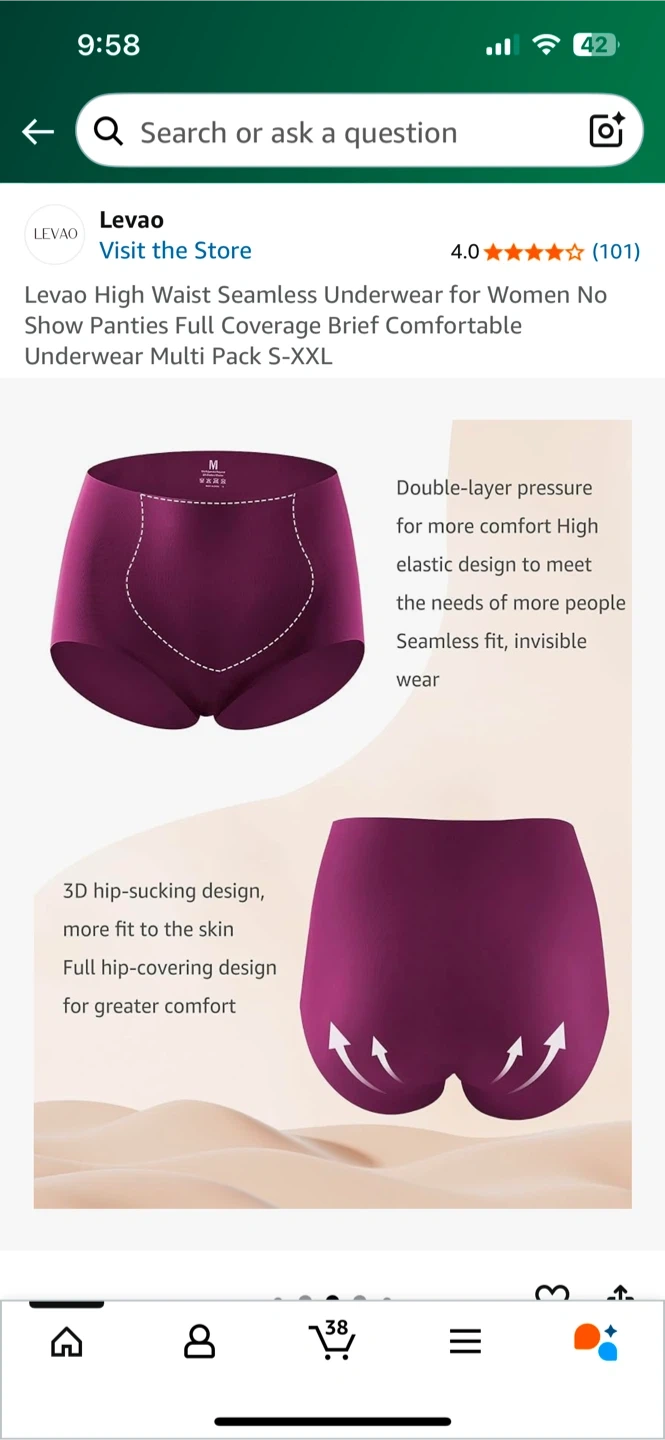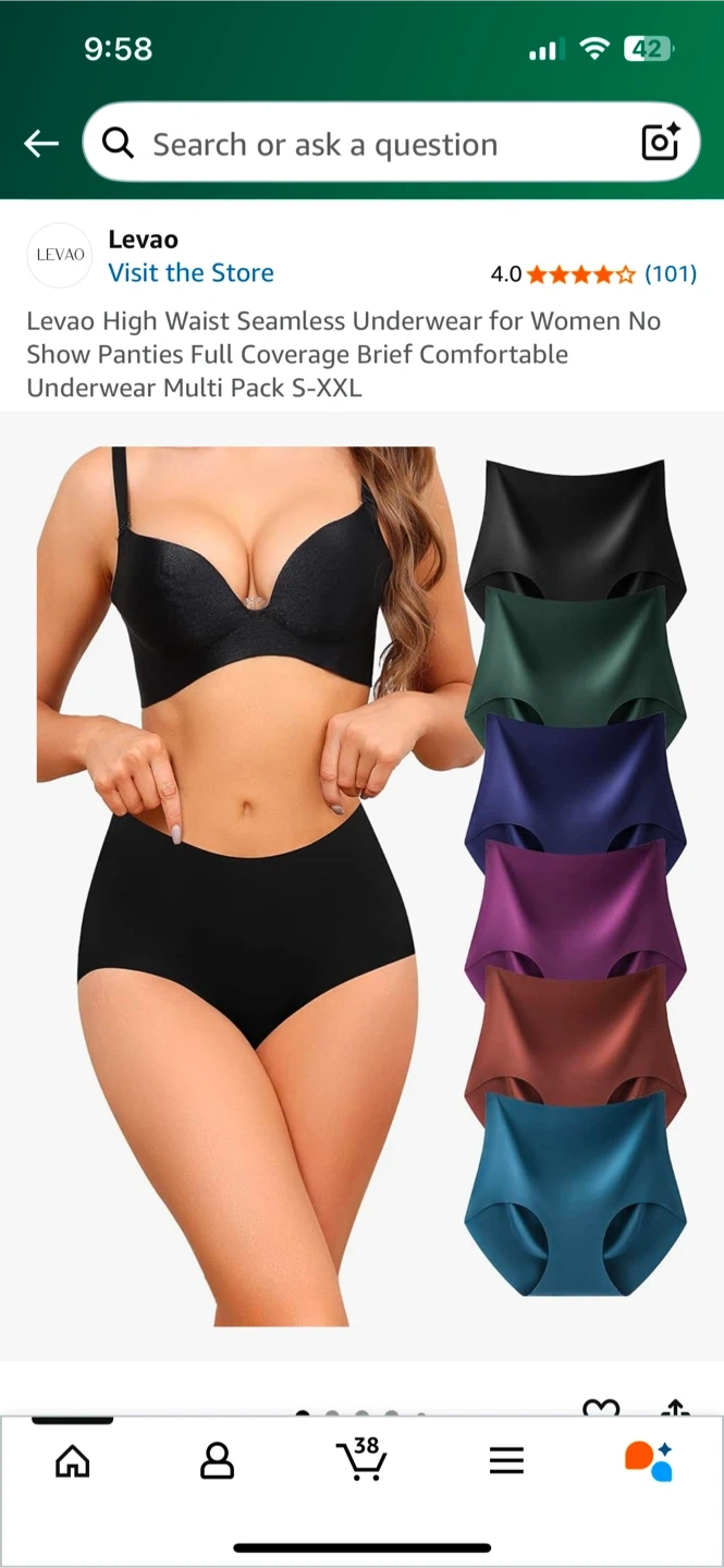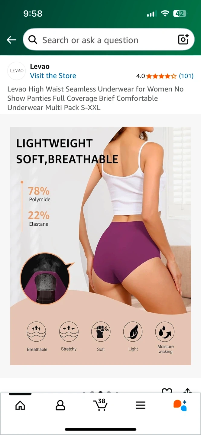 6 pcs Levao high waist seamless underwear, size large . These are lightweight, soft, and breathable. Made of 78% polymide and 22% elastane. They're designed to be stretchy and moisture-wicking for extra comfort!