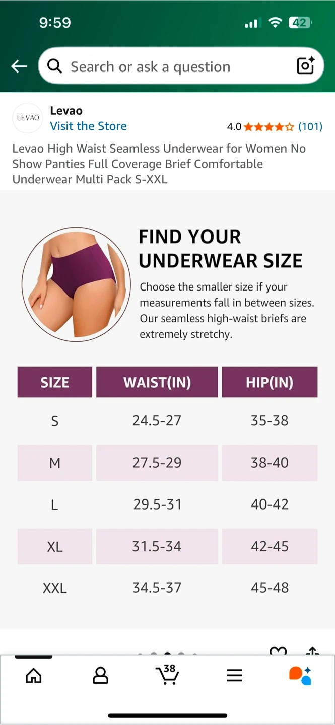6 pcs Levao high waist seamless underwear, size large . These are lightweight, soft, and breathable. Made of 78% polymide and 22% elastane. They're designed to be stretchy and moisture-wicking for extra comfort!
