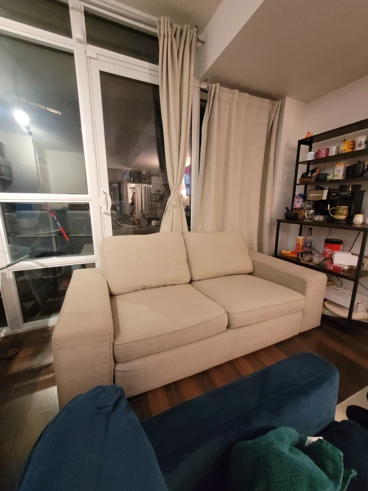 Selling an ikea 2 seater Kivik. It's in great condition and would be perfect for a living room or den. It's very comfortable and stylish. The fabric is removable making it easy to wash , or swap out for a new texture or different colour. I got a new couch so I'll no longer be needing it :) Pick up near Dufferin and King.