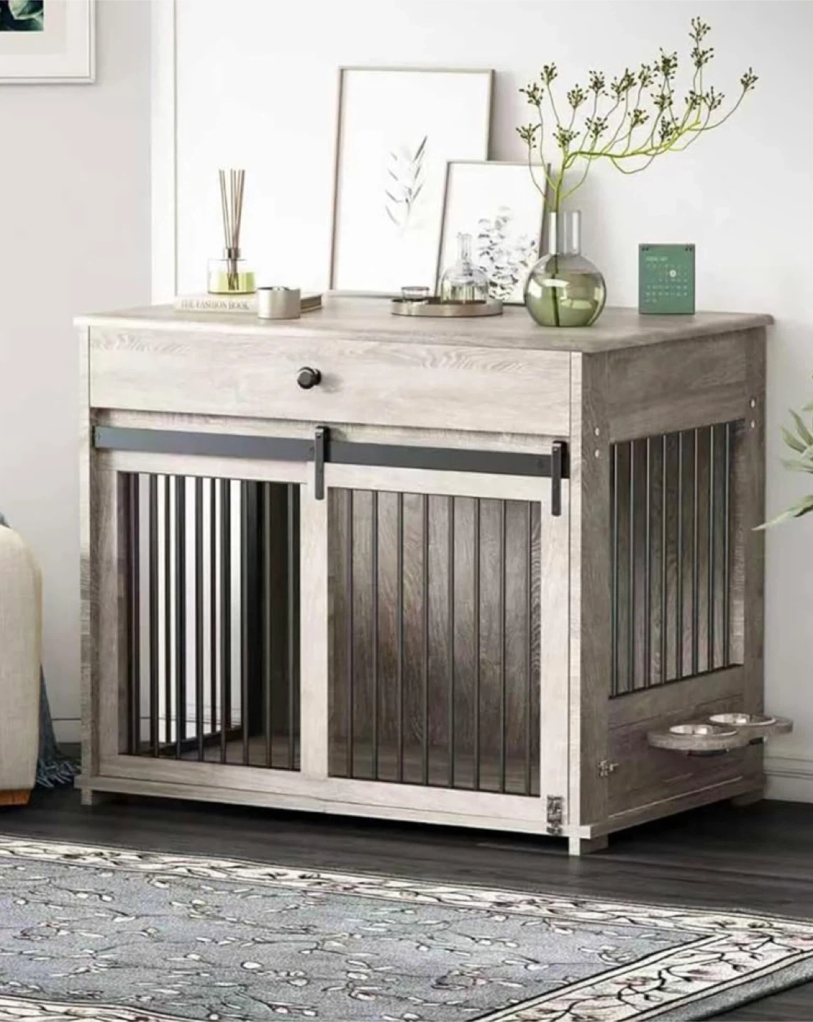 Grey Wooden Dog Crate Furniture, 39.4"x24.7"x34.7"