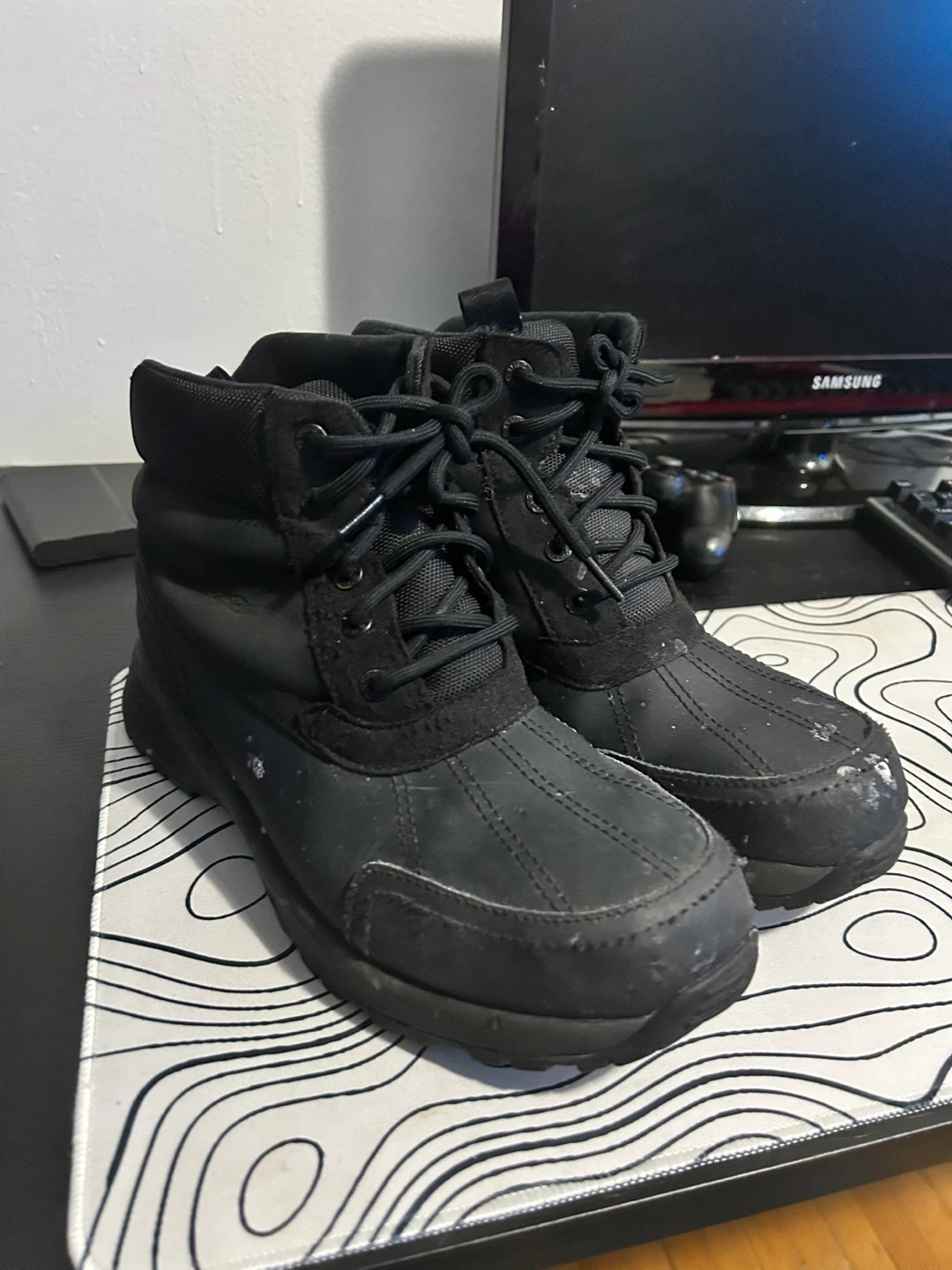 Selling a pair of UGG waterproof boots in black. They show some signs of wear, but are still in good condition for keeping your feet dry and warm during wet weather. These are great for everyday wear!