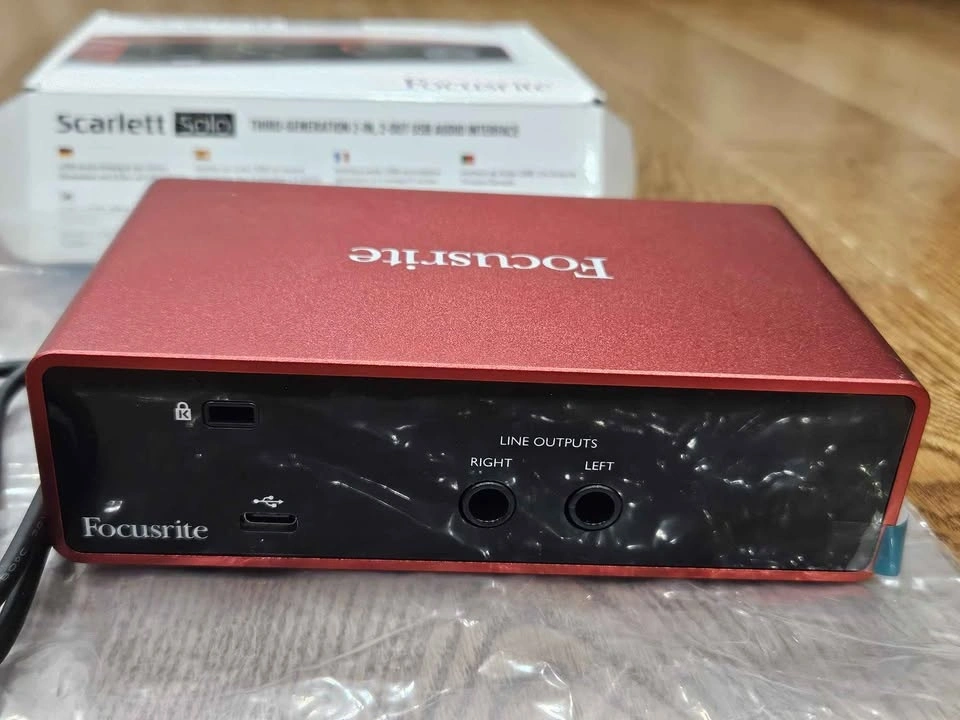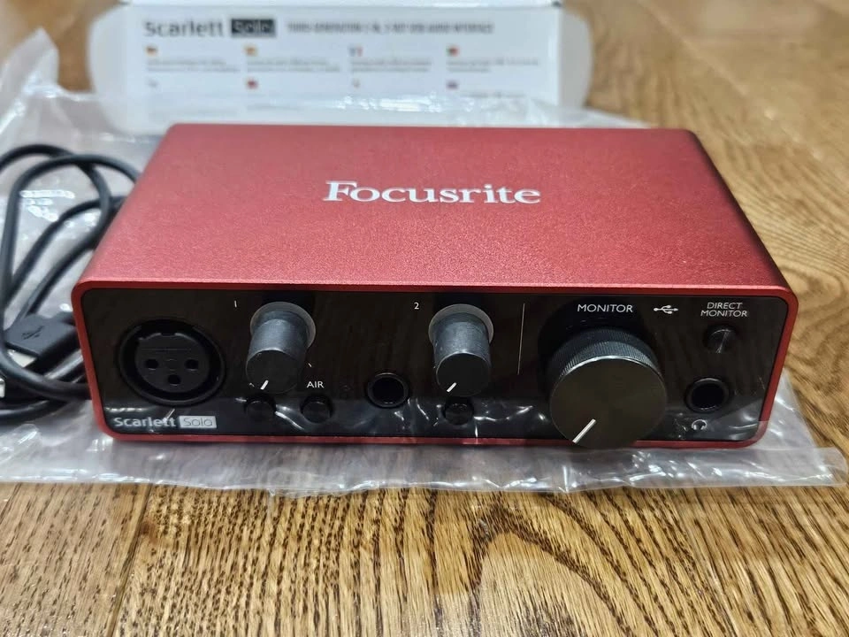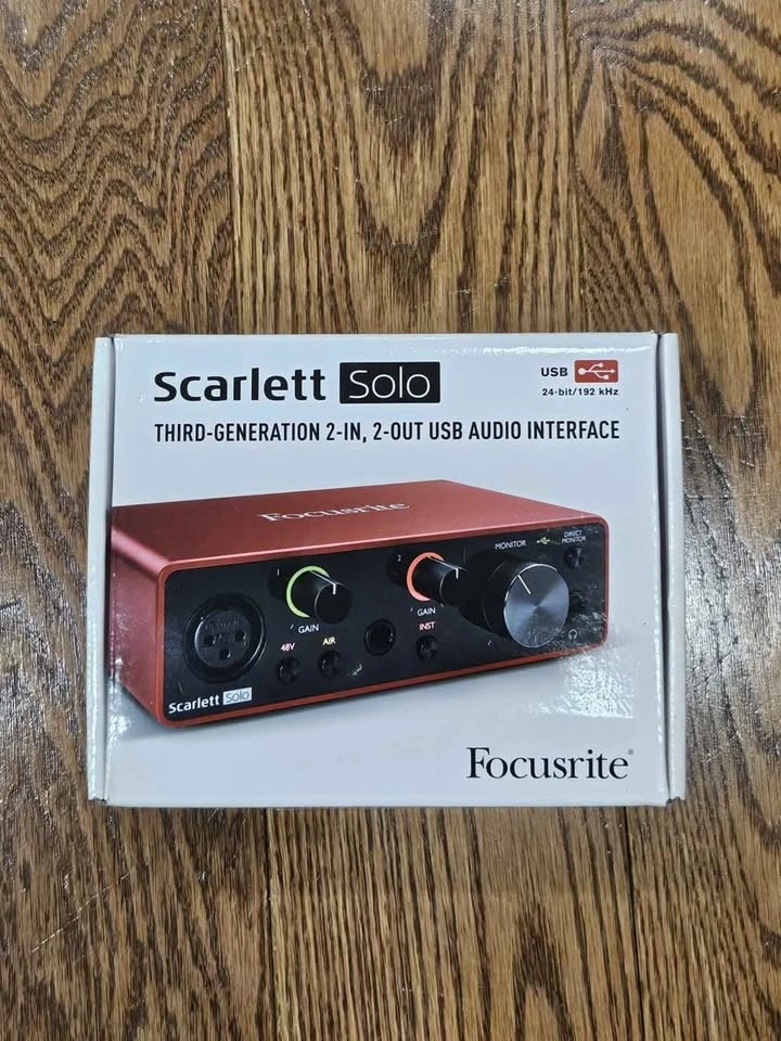 I'm offering a Focusrite Scarlett Solo third-generation 2-in, 2-out USB audio interface, perfect for singer-songwriters and musicians. This is gently used, but in excellent condition and ready to elevate your recordings.