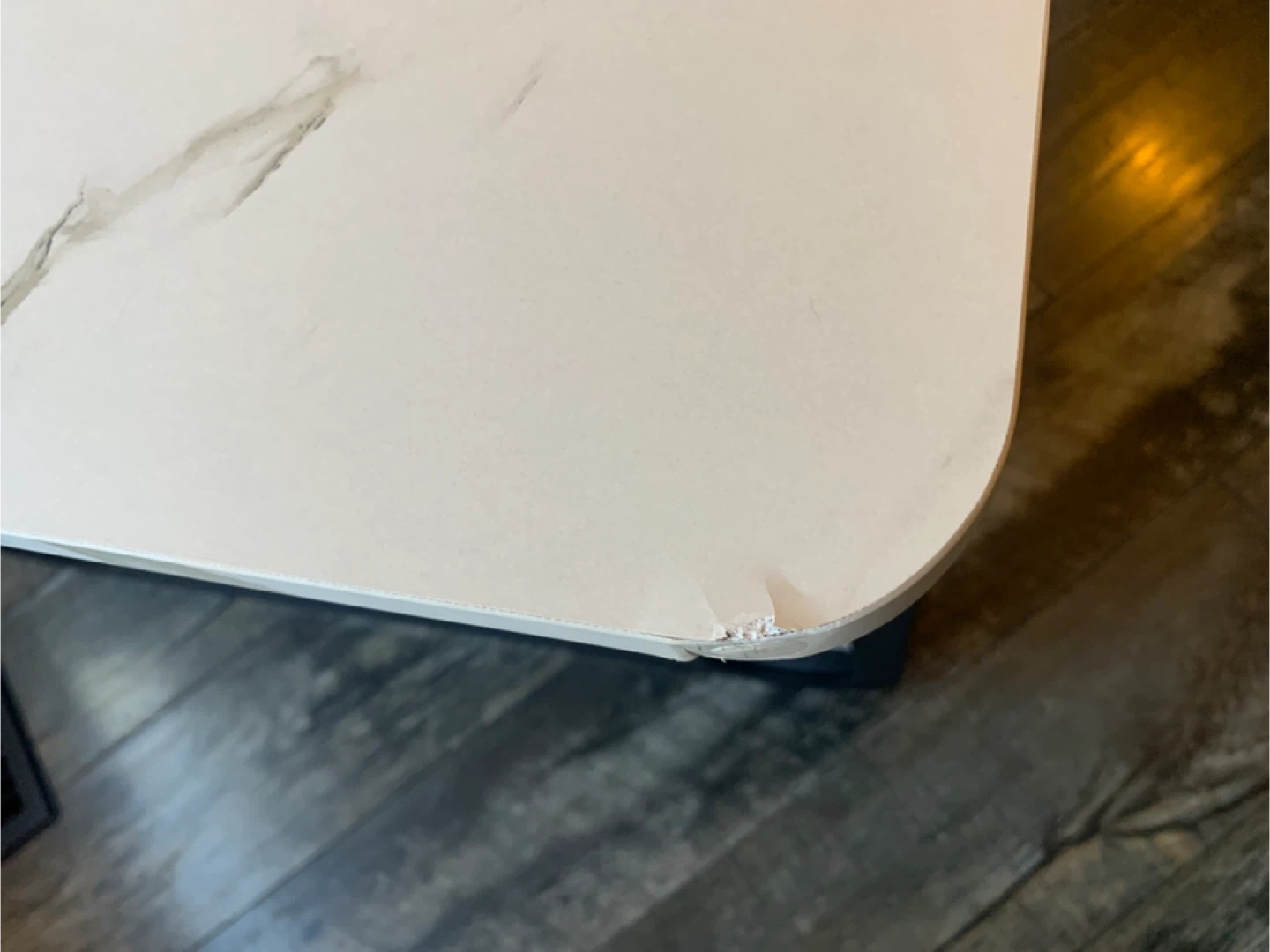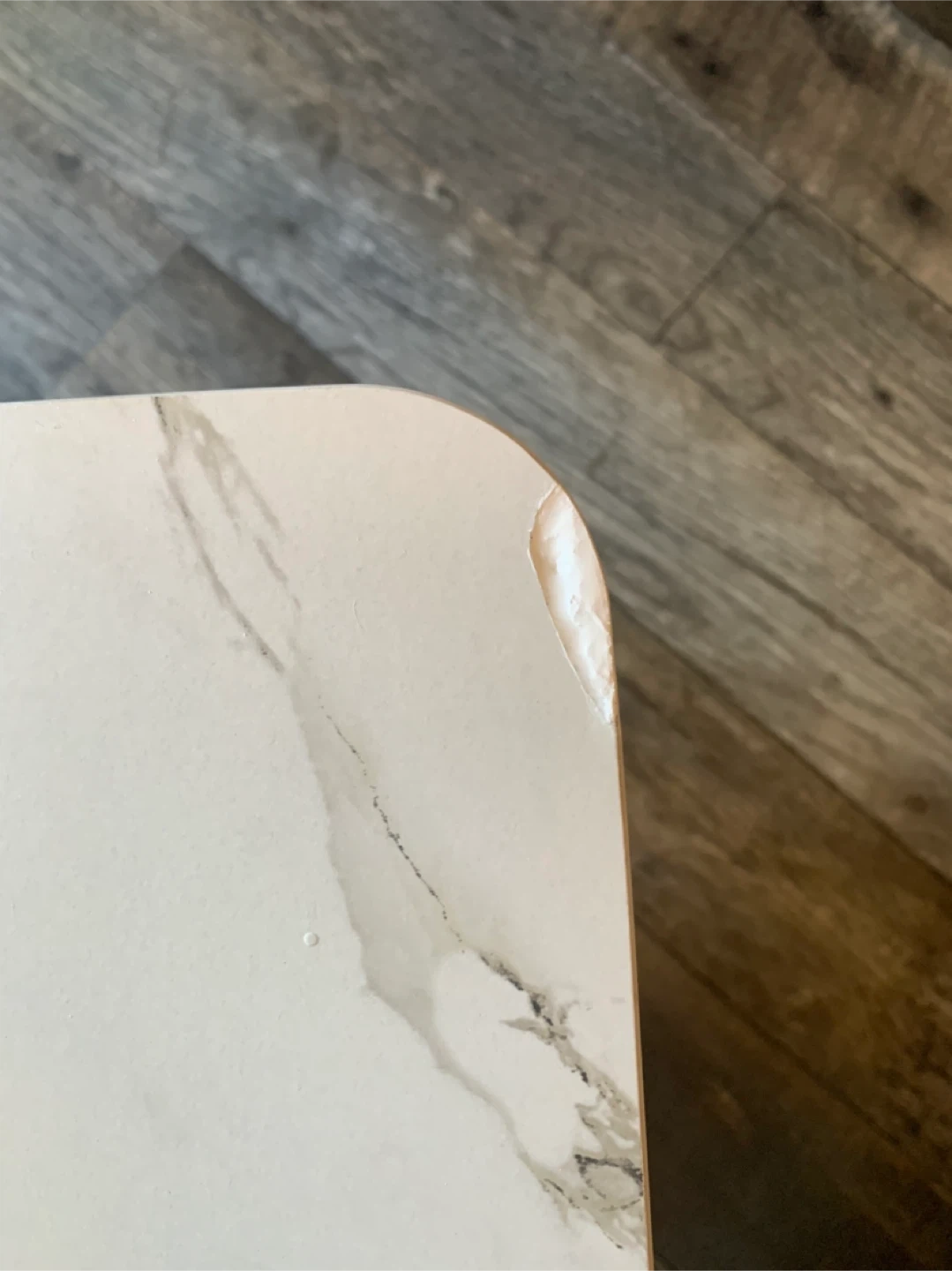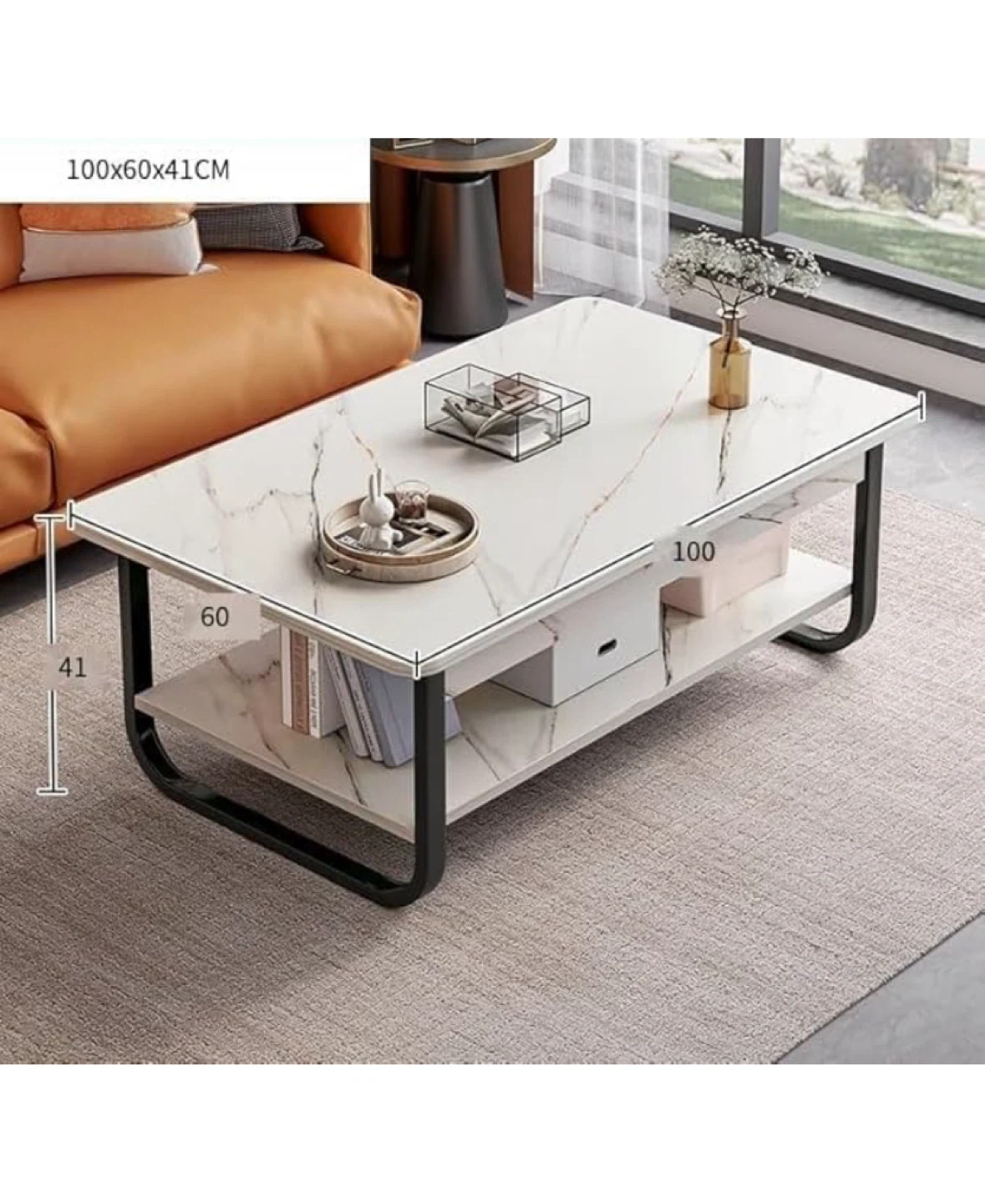 This stylish and elegant coffee table features a faux laminate top with a marble texture and metal legs. It measures 100 x 60 x 41 cm and weighs 9 pounds. Perfect for any living room, balcony, dining room or office.