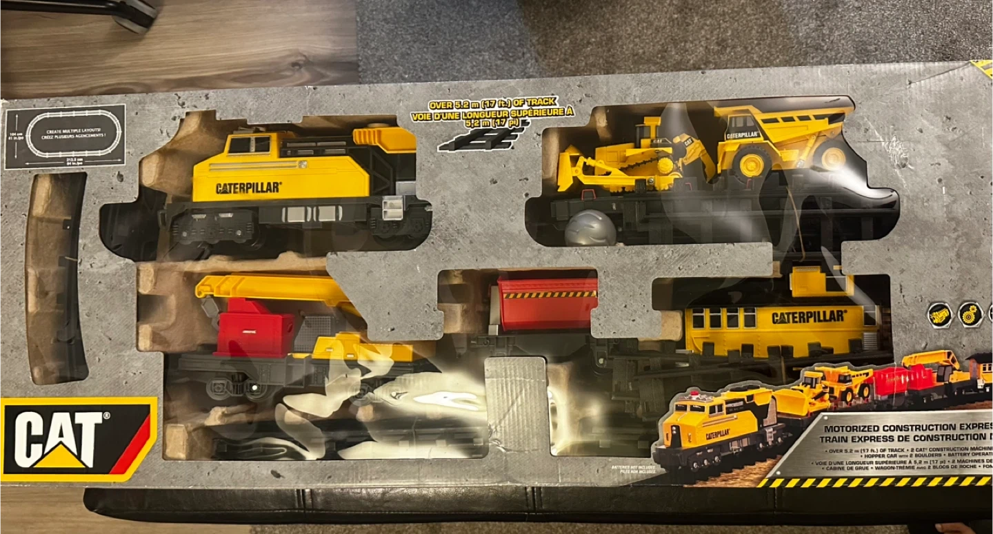 Selling a CAT Motorized Construction Express Train Set in excellent condition. The box has been opened, but the set is clean, complete, and well cared for. Perfect for any kid who loves construction vehicles and trains!