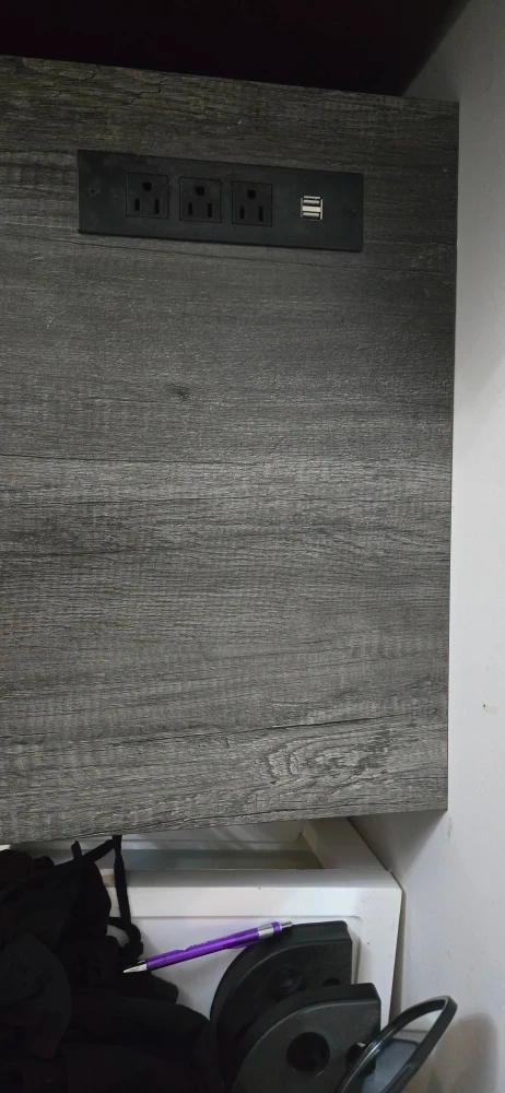Selling a grey wooden desk! It features built-in power outlets and USB ports, super handy for keeping everything plugged in and organized. The desk is in good condition and comes disassembled in a box for easy transport. lighting come with the remote 50D x 101.6W x 75H Centimetres Number Of Drawers 2 Size 40" Number Of Shelves 3 Tabletop Thickness 1.5 Centimeters Working Surface Diagonal Length 101.6 Centimeters
