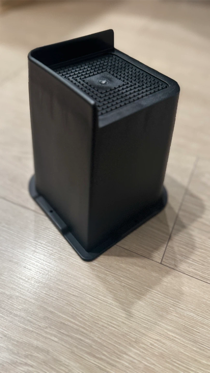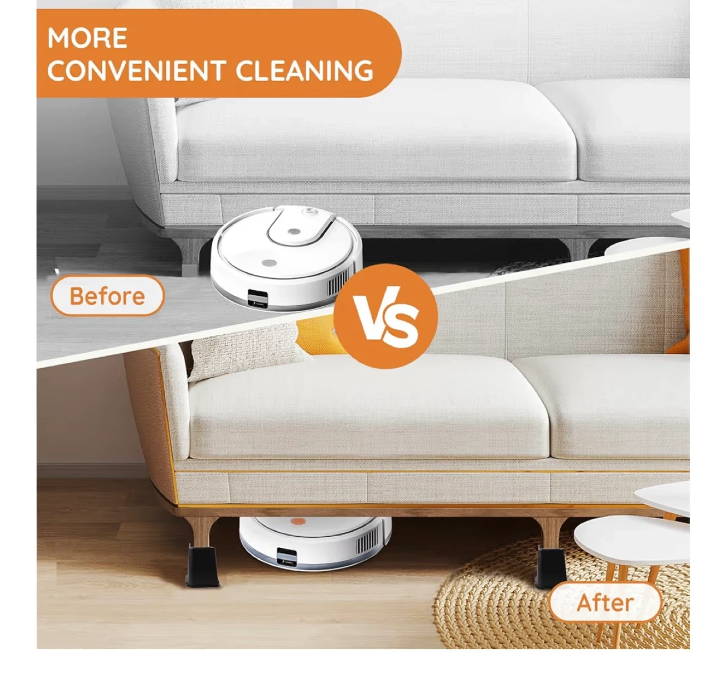 Selling a set of four black furniture risers! They're about 6 inches tall. These risers are designed to fit different types of furniture legs, including square, round, and irregular shapes. They're also anti-slip, strong, height adjustable, and easy to assemble