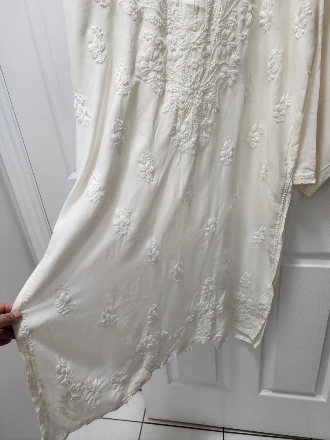 New White Embroidered Kurti - Chest 26", Length 43" 1
