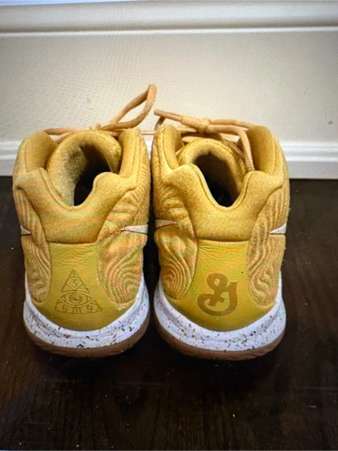 A pair of Nike kyrie fours Cinnamon Toast Crunch pretty good condition. Worn five tot en times and thoroughly cleaned. Size 9