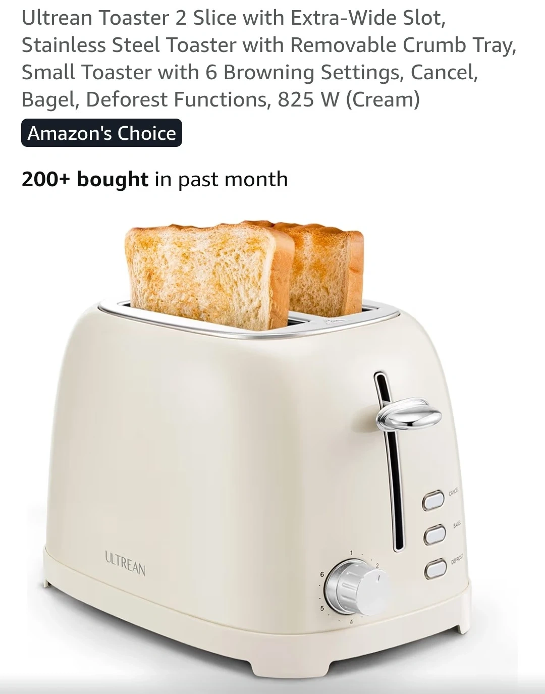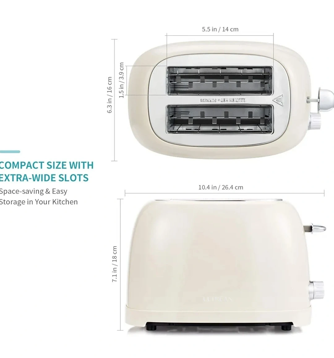 This ULTREAN 2-slice toaster is perfect for your kitchen! It features extra-wide slots to easily accommodate bagels and thick slices of bread. The browning control knob lets you customize your toast to your ideal brownness with 6 settings. It's also designed to be easy to clean and store, with a removable crumb tray and a power cord that stores neatly under the base