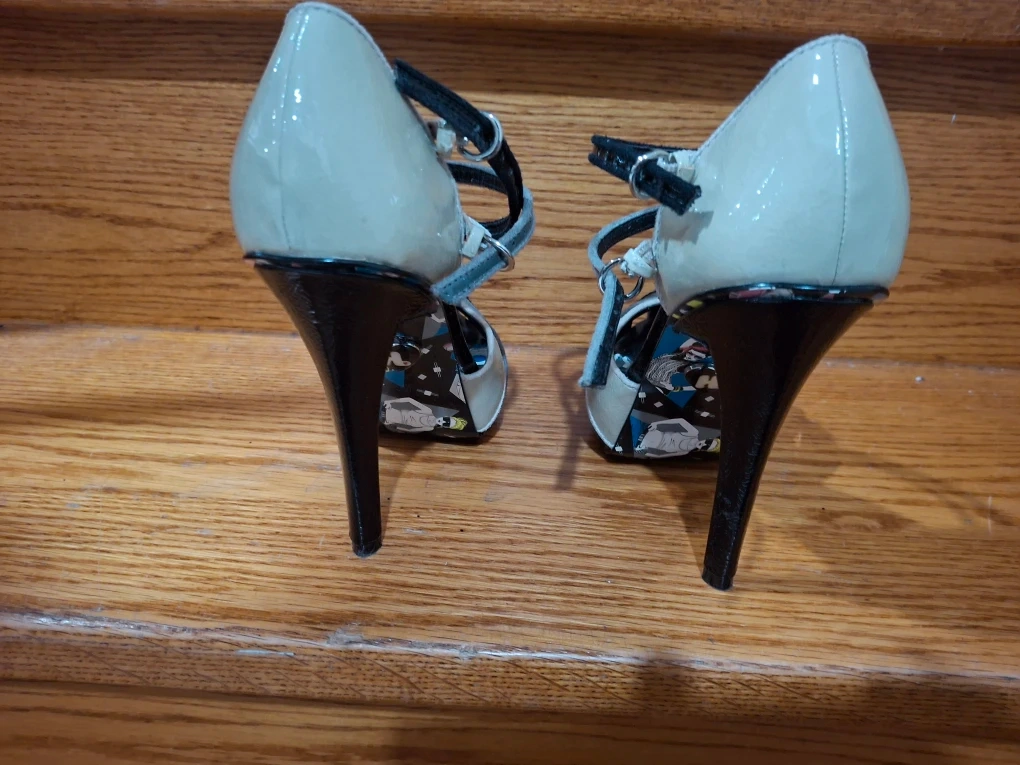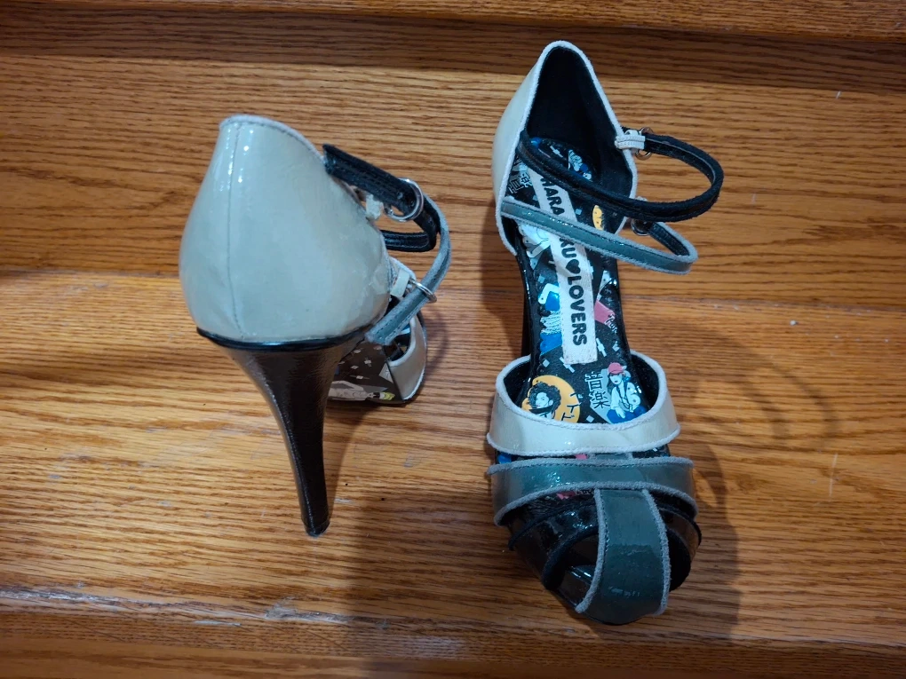 These Harajuku Lovers heels are super unique and fun! They are a size 8.5 and feature a playful design inside. Perfect for adding a pop of personality to your outfit!
