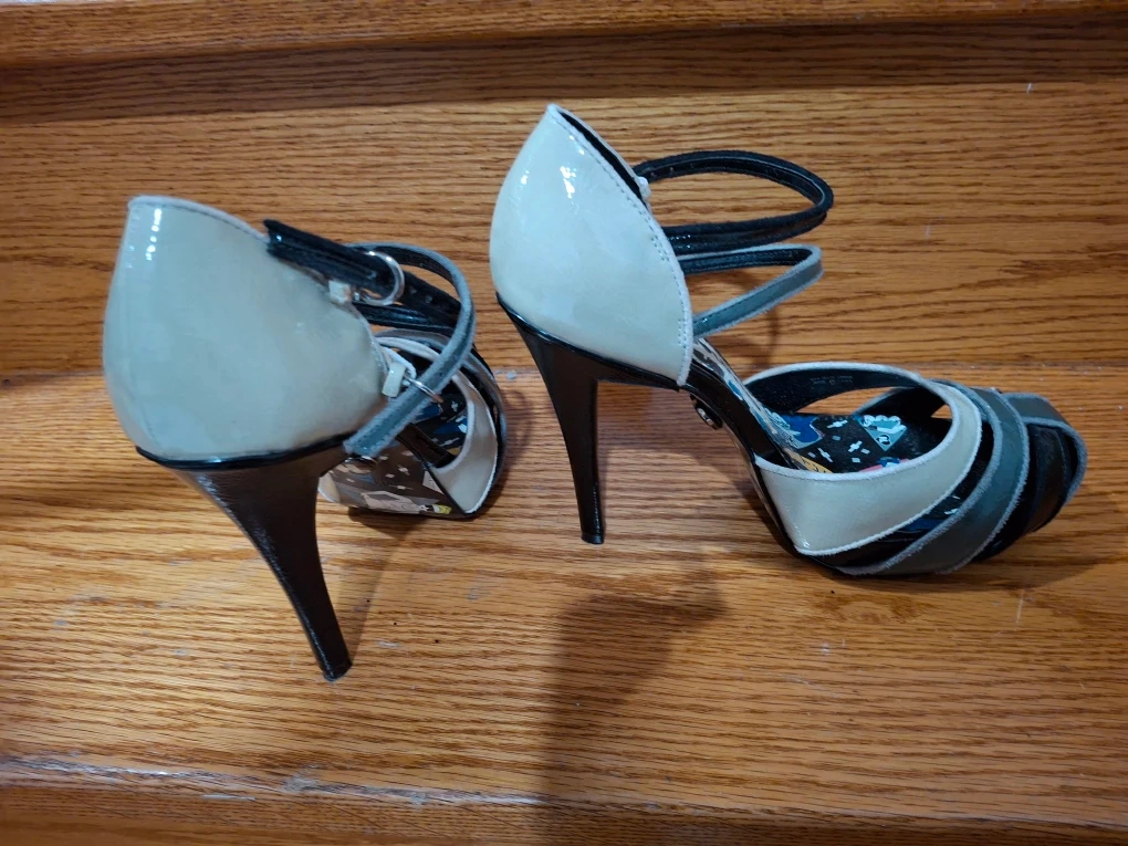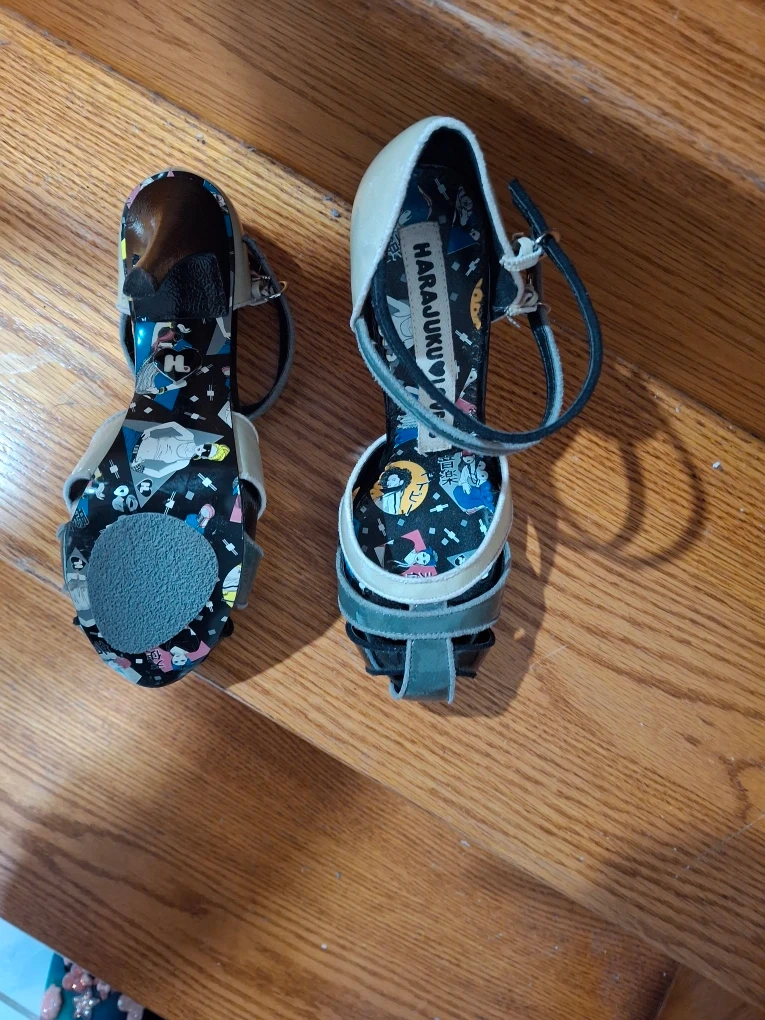 These Harajuku Lovers heels are super unique and fun! They are a size 8.5 and feature a playful design inside. Perfect for adding a pop of personality to your outfit!