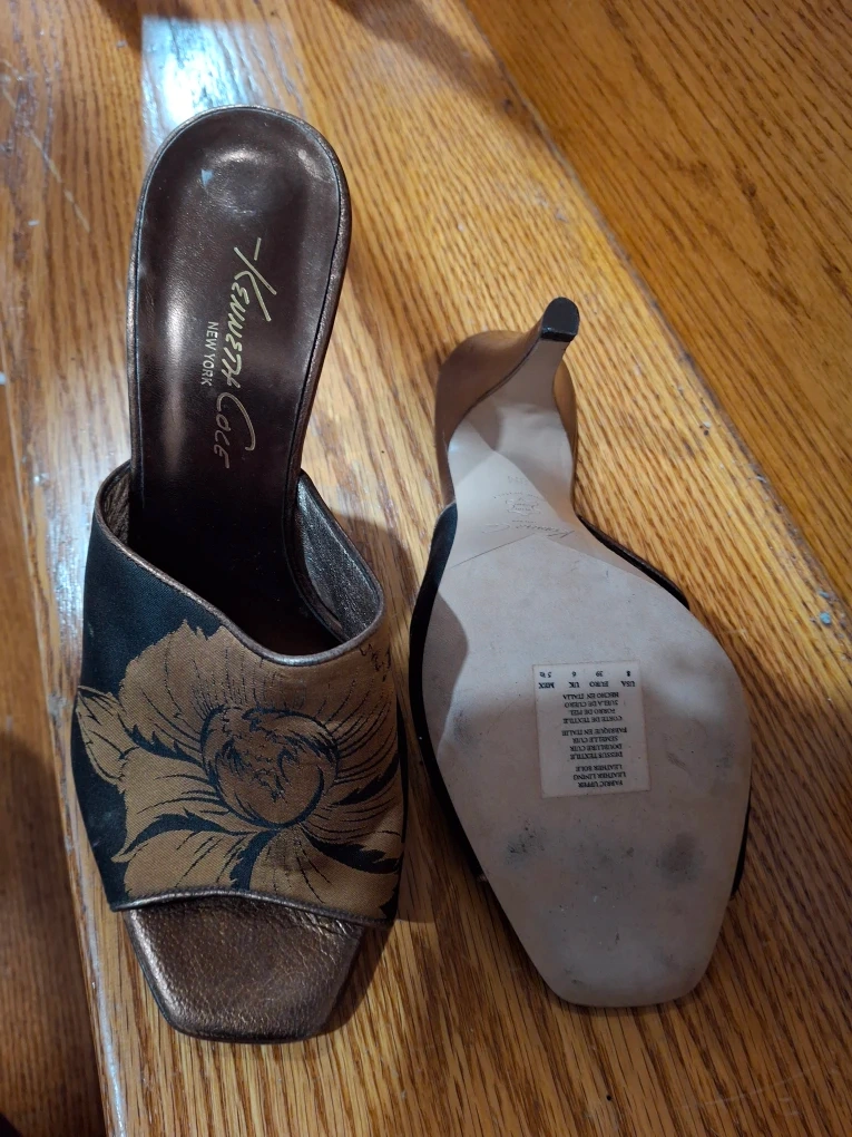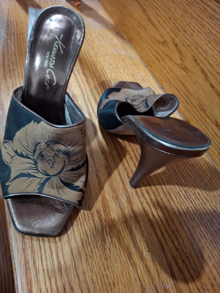 Selling a pair of Kenneth Cole New York mules in a size 8. They feature a beautiful floral design and are in good condition. Perfect for adding a touch of elegance to any outfit!