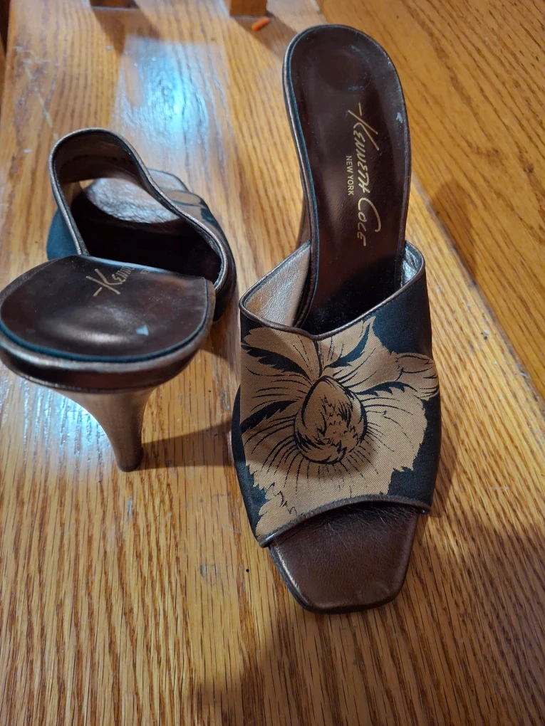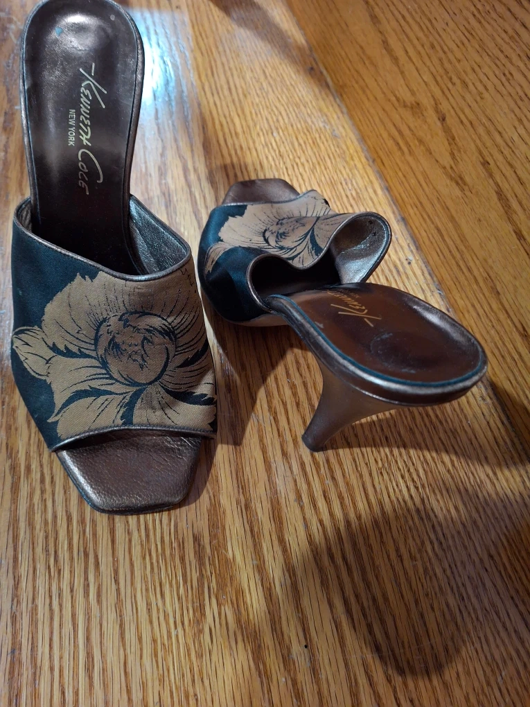 Selling a pair of Kenneth Cole New York mules in a size 8. They feature a beautiful floral design and are in good condition. Perfect for adding a touch of elegance to any outfit!