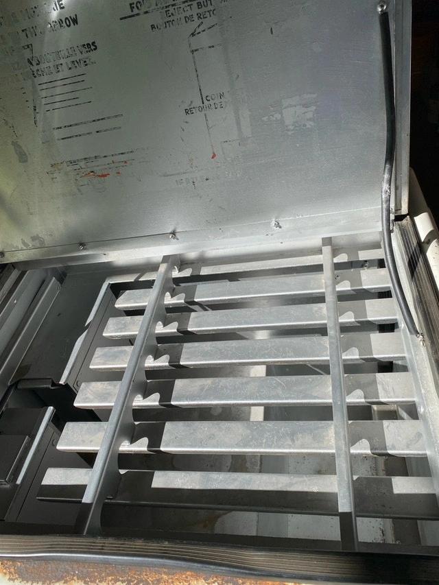 This is the smaller Ideal Slider chest cooler Model 200C (32” wide-35” with coin mechanism). Perfect for small spaces! The machine gets bottles ice cold, beer bottle or pop bottles. I have the bar for the side access door, a new coin mechanism lock and key are on it and a new rubber lid gasket (between pieces you lift). 35”Wide (with coin box) 35”High 27” Deep. Pick up in Carlisle