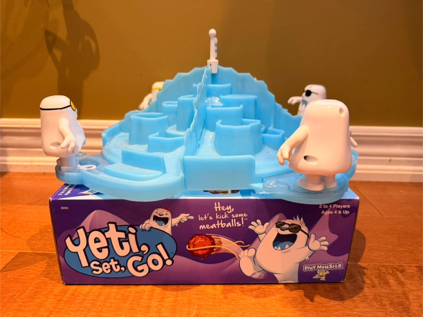 Selling a gently used Yeti Set Go! game by PlayMonster. This fun game is for 2 to 4 players, ages 4 and up. Includes 4 Meatball-Kickin' Yetis! Get ready to kick some meatballs!