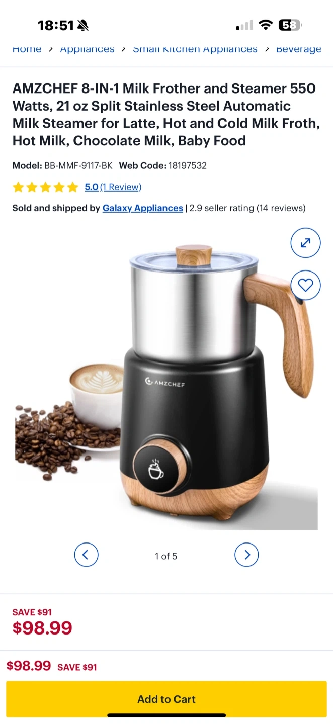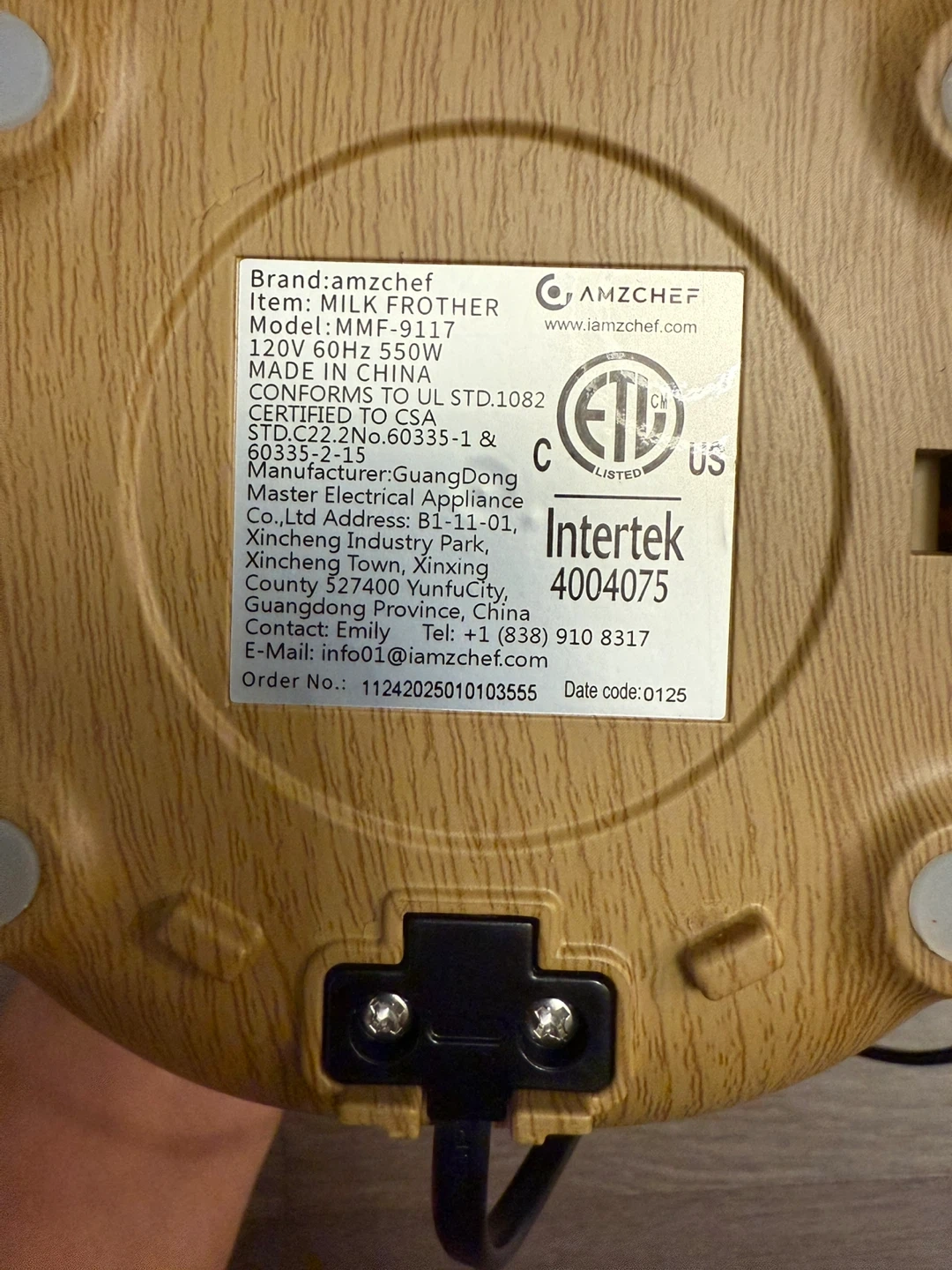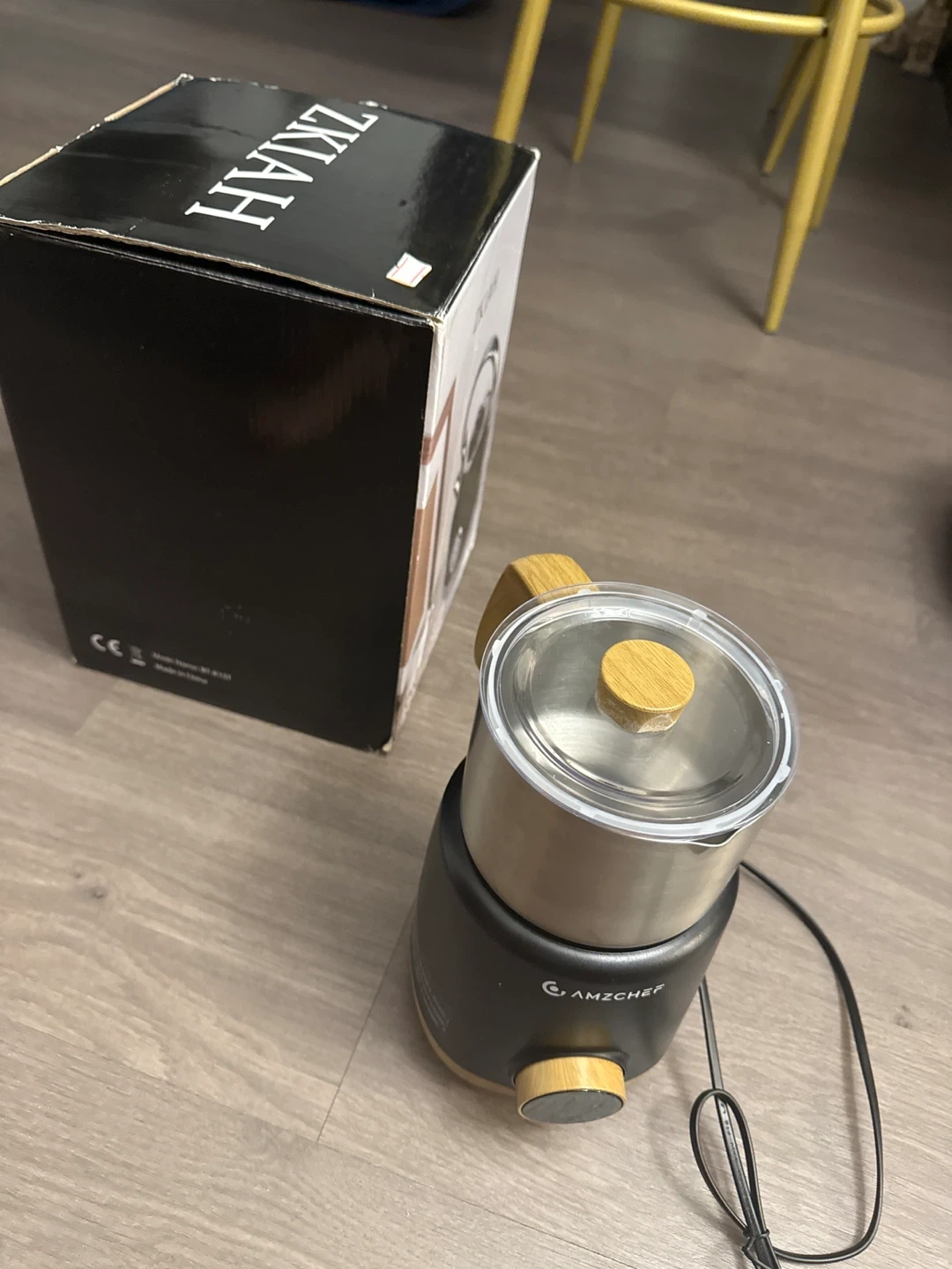 Selling an Amzchef milk frother and steamer, model MMF-9117! It's in great condition and comes with the original box. This frother is perfect for making lattes, hot chocolate, and more. It operates at 120V and 550W. No box
