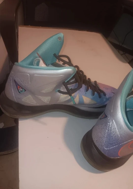 Selling a pair of Nike Lebron XI 11 basketball shoes. They have a unique colorway with blue, purple, and silver accents. Great for playing ball or casual wear!