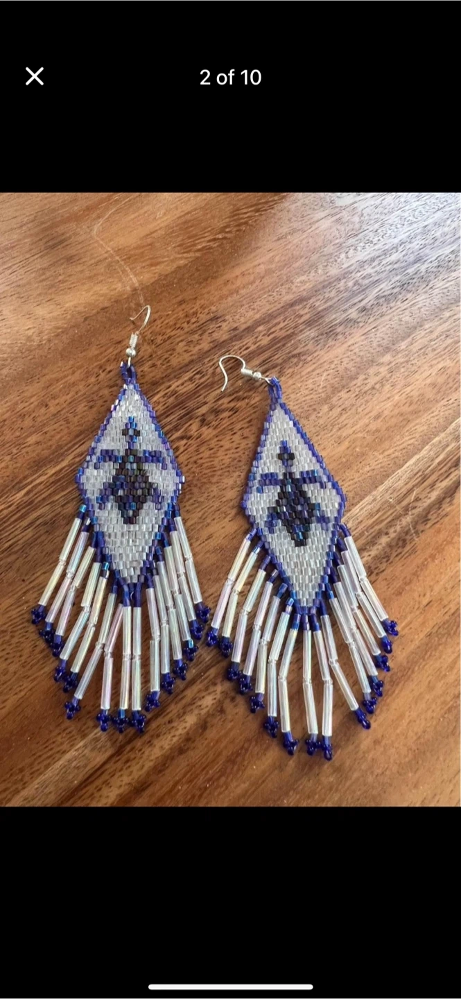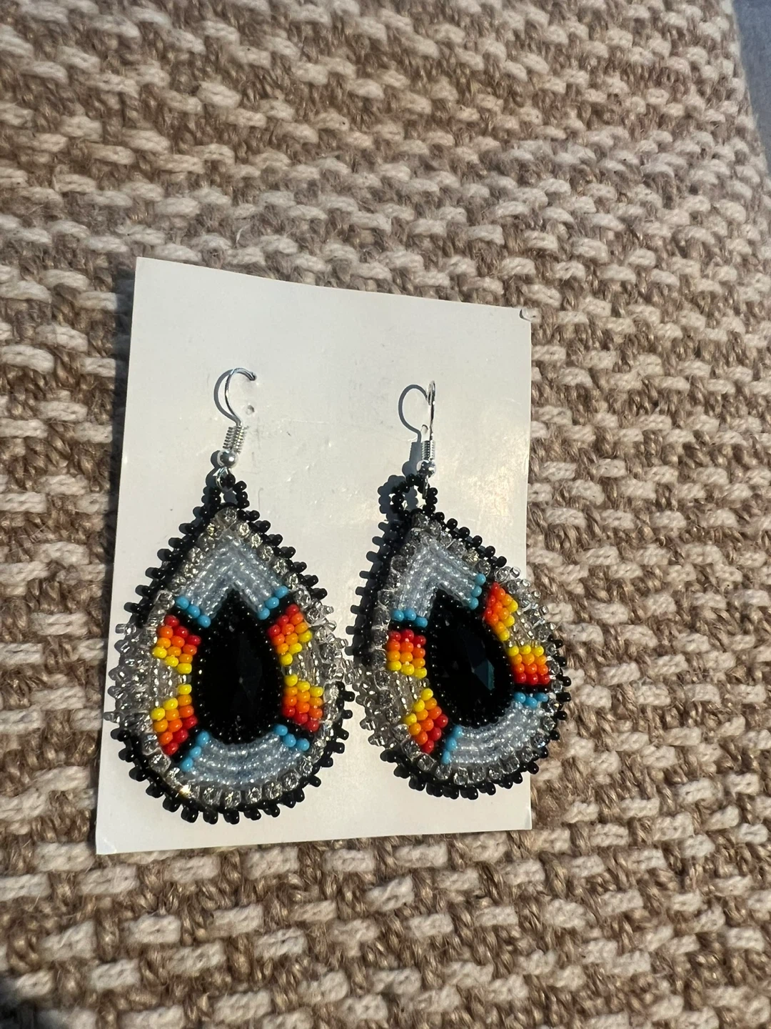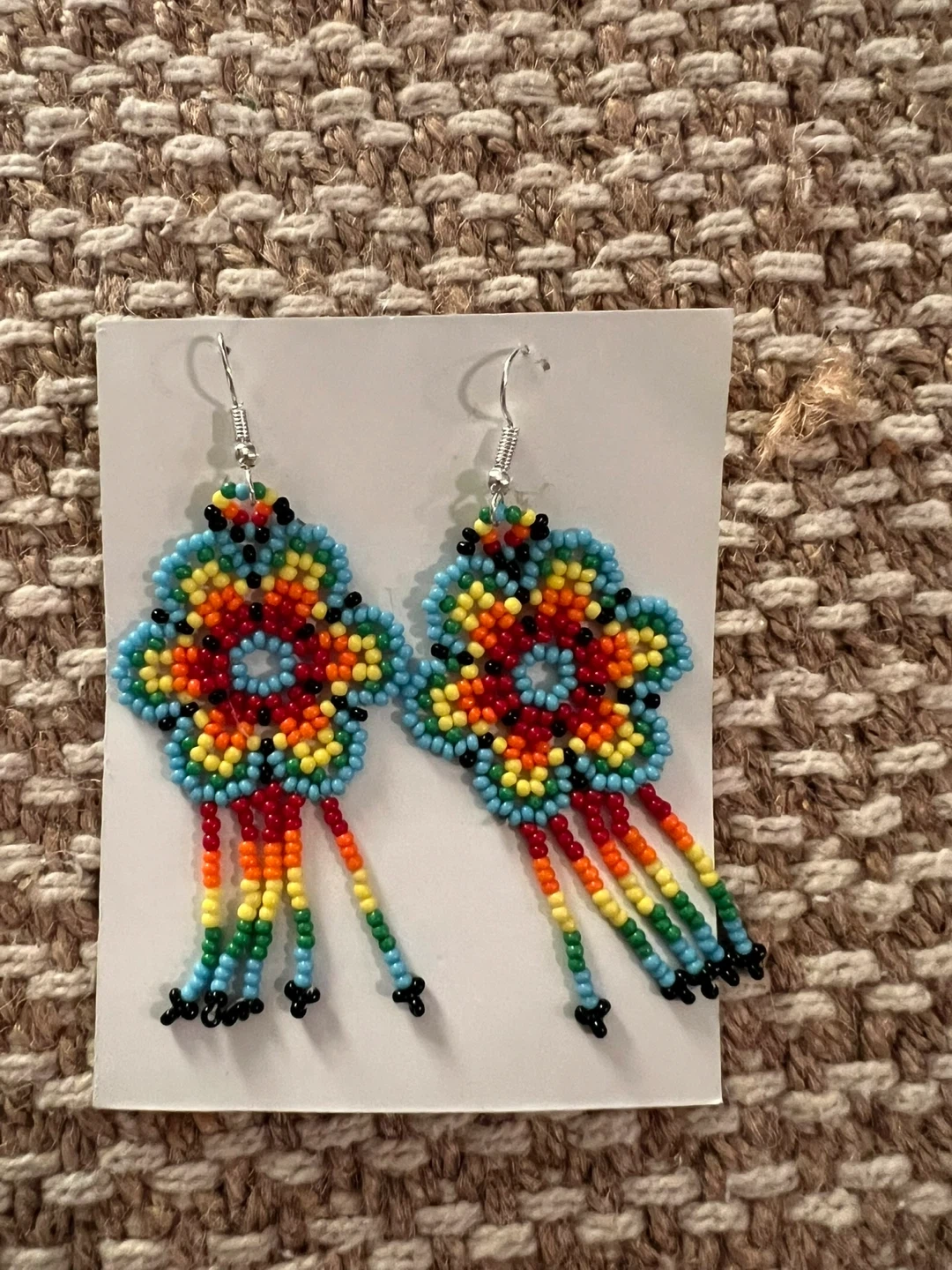 Check out these unique, handmade beaded earrings! They feature intricate designs and vibrant colours. Perfect to add a pop of colour to any outfit!