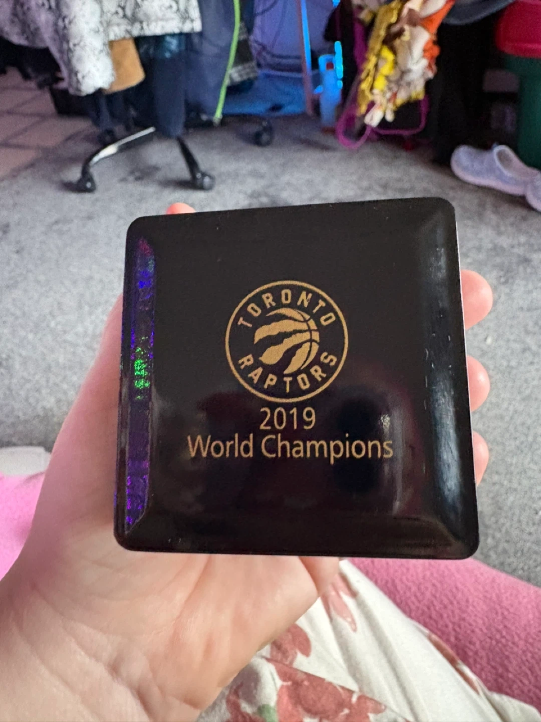 Selling a Toronto Raptors 2019 World Champions ring! The ring comes in its original box. A great item for any Raptors fan! It is very big never wore it I had it made love 💕 it but it just sits here never used or showcased maybe someone else can give it the love I can’t .