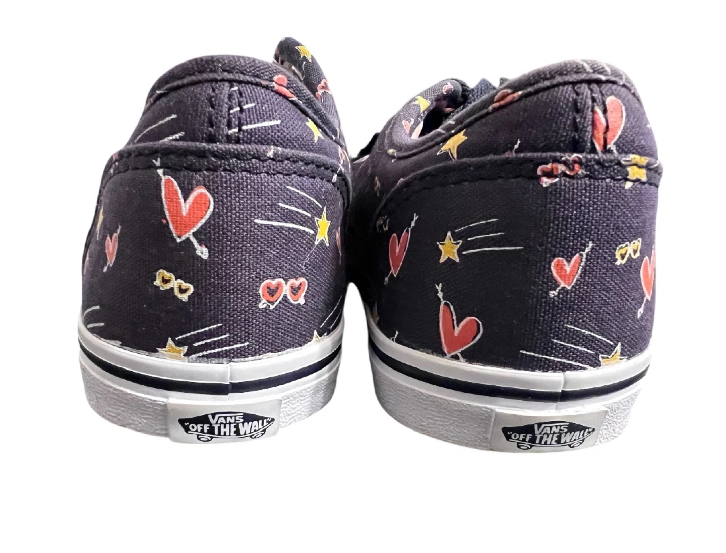 Super adorable brand new Vans with an all-over hearts, stars, and doodle print! These are brand new with tags, never worn, clean, and ready for their first owner.