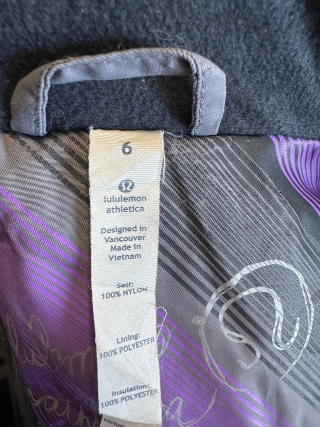 Lululemon Beautiful Size 6 Winter Coat light lilac purple colour - in a really good condition!! Pick up in the lobby of my condo located in Scarborough at Finch and McCowan