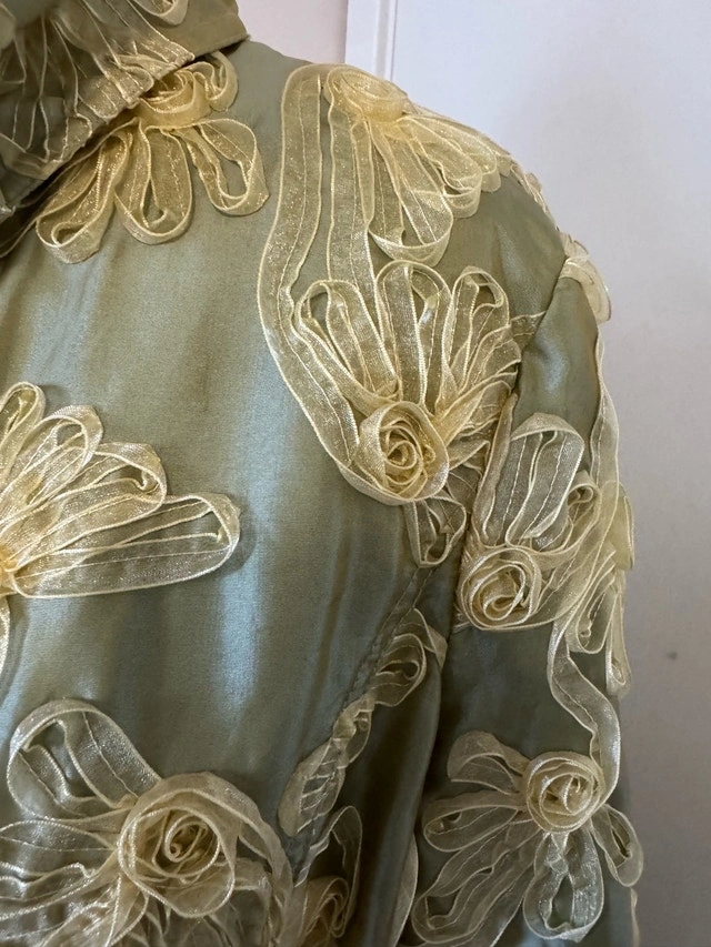 Ladies Size Medium Beautiful Dress Jacket - Like New Worn Twice lovely dinner / classy jacket it’s a light Green, with a blue gold colour shift with 3-D ribbon flowers Pick up in the lobby of my condo, located in Scarborough at Finch and McCowan