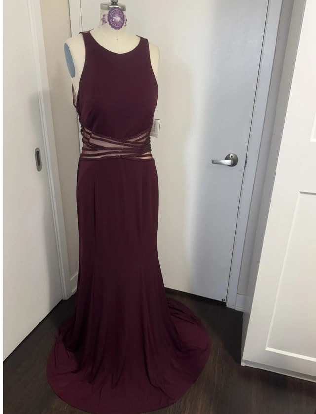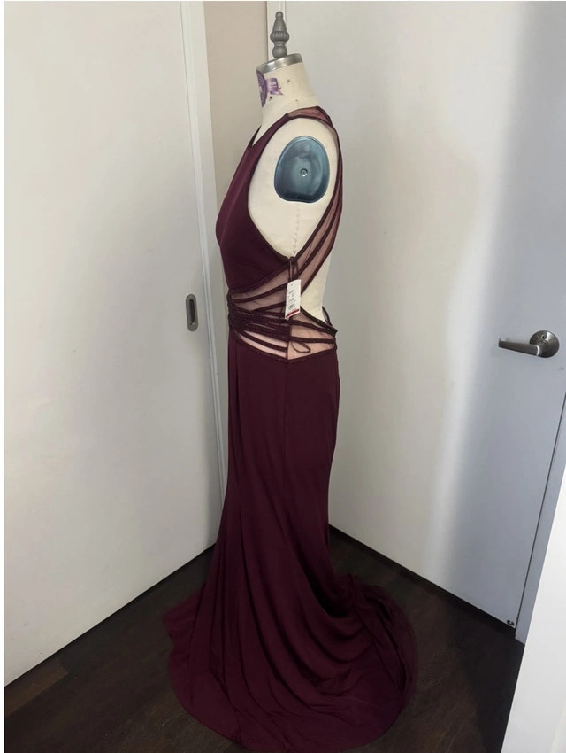Ladies Size 14 Merlot Wine Colour Special Occasion Evening Dress - New With Tags On. Note the dress is missing two tiny buttons that go at the back of the neck to hold the dress together, so it does need a small mend. It’s absolutely stunning with an open back, brand new never worn. Only selling because I lost weight and it will no longer fit. Pick up in the lobby of my condo, located in Scarborough at Finch and McCowan. Check out my other ads as I’m posting a lot of ladies dresses- cleaning out my closet!! For Sale By: Owner