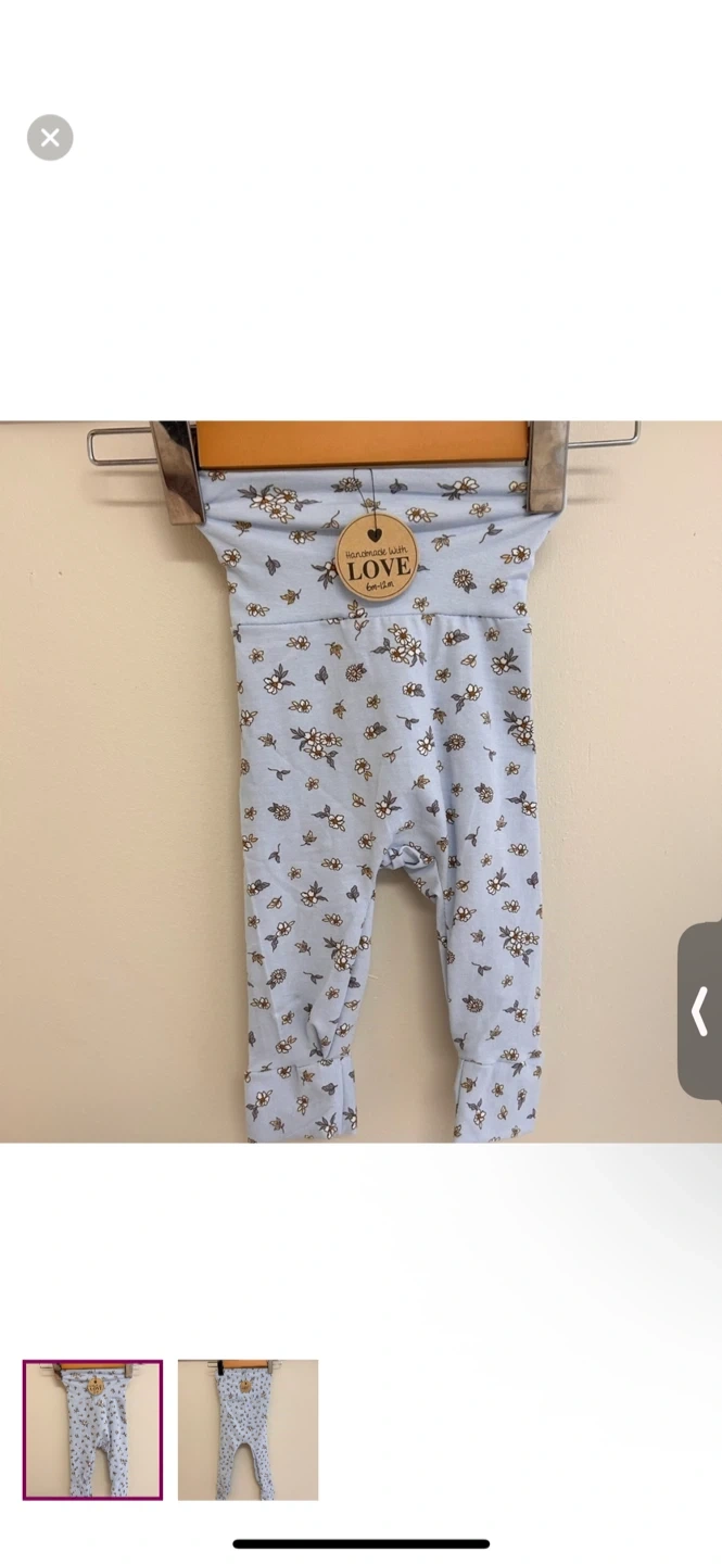 Handmade by a local small shop. Grow with me pants. Blue floral print. Brand new