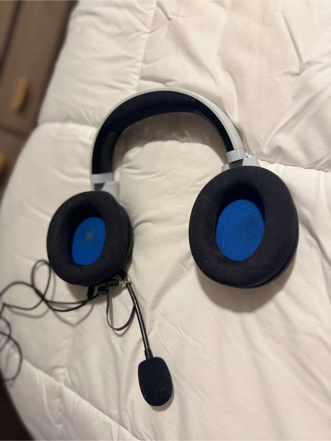 Selling a Razer Kaira X wired gaming headset in white and black. It's compatible with Playstation 5 / PSS, PS4, PC, Mac, and Mobile. Features 50mm drivers and a HyperClear Cardioid Mic. The headset also has memory foam cushions and on-headset controls. Originally bought for $79.99