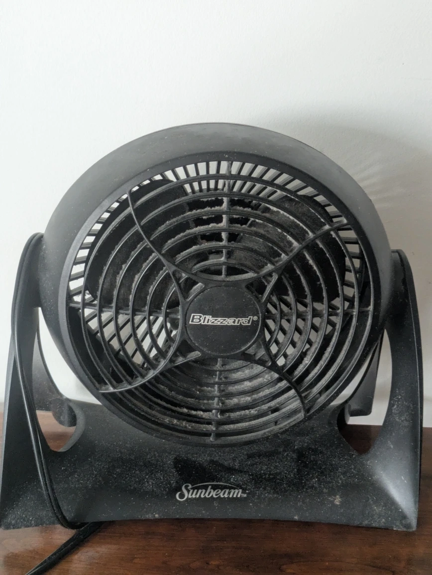 Selling a Sunbeam Blizzard fan in black. It's a great fan for keeping cool on hot days! It's in used condition, as you can see in the photos.