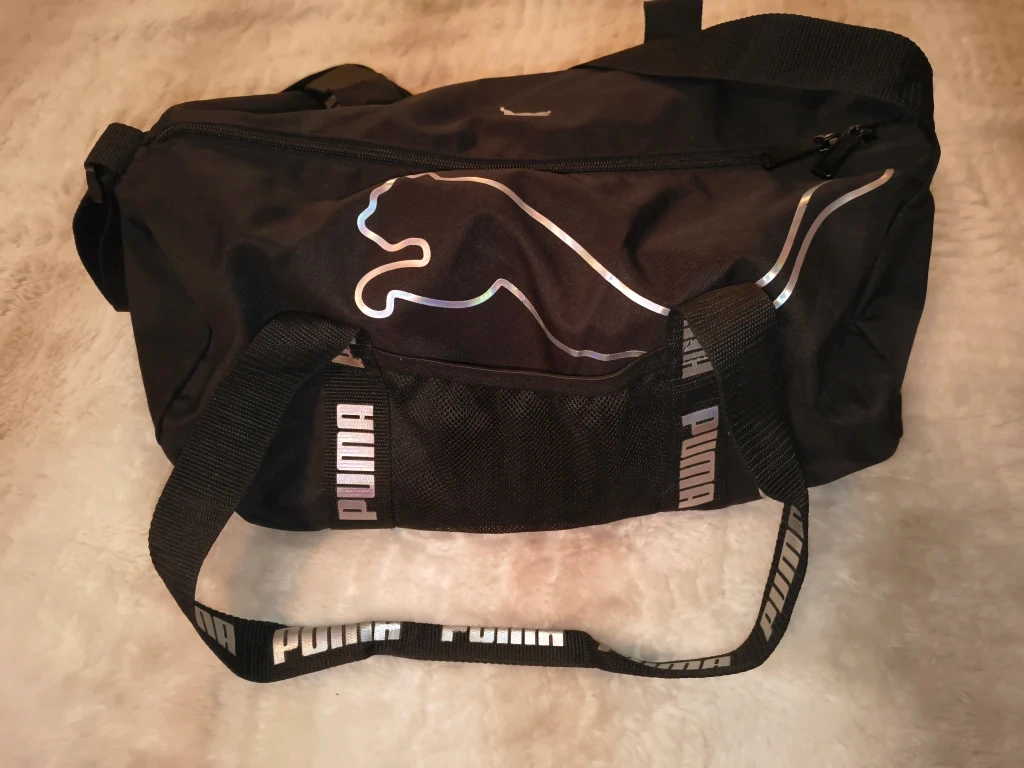 Selling a Puma duffle bag in black! It's in great condition and perfect for the gym or a weekend getaway. The bag features the Puma logo and sturdy straps.