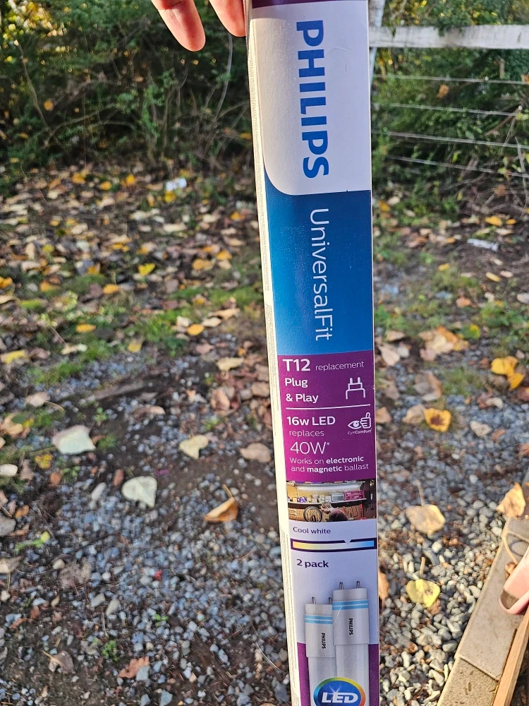 Selling a 2-pack of Philips UniversalFit T12 LED replacement bulbs! These are plug-and-play, using 16W LED to replace 40W bulbs. They work on both electronic and magnetic ballasts and produce a cool white light.