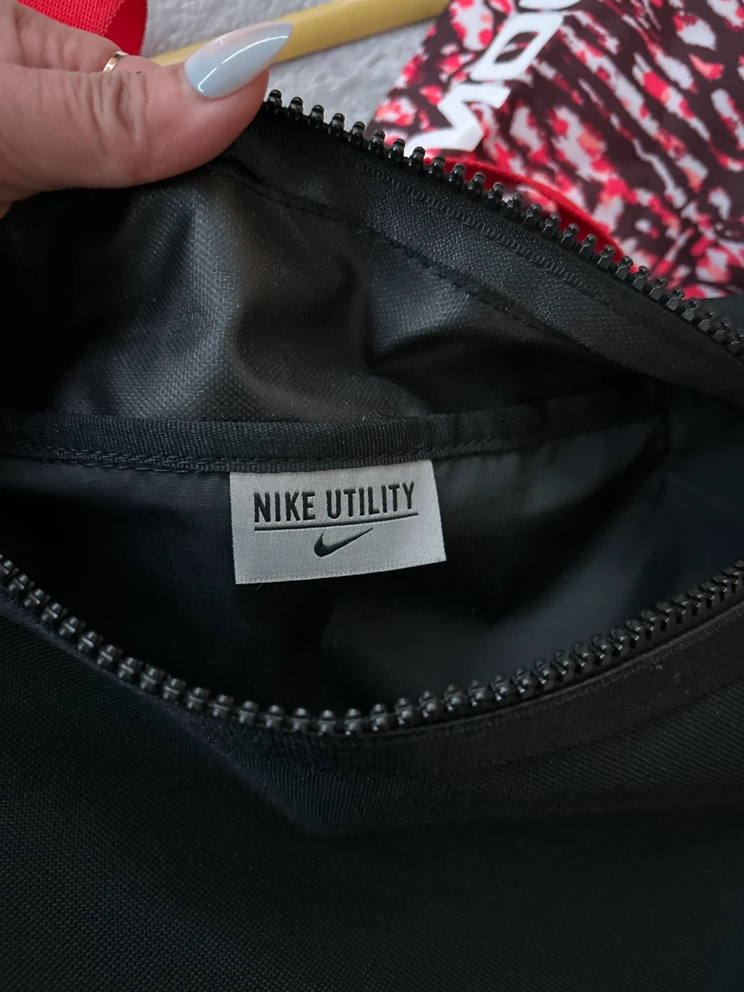 This Nike backpack is perfect for carrying your essentials! It features a sleek black design with vibrant red accents and the iconic Nike swoosh. The drawstring closure makes it easy to access your belongings. Unisex.