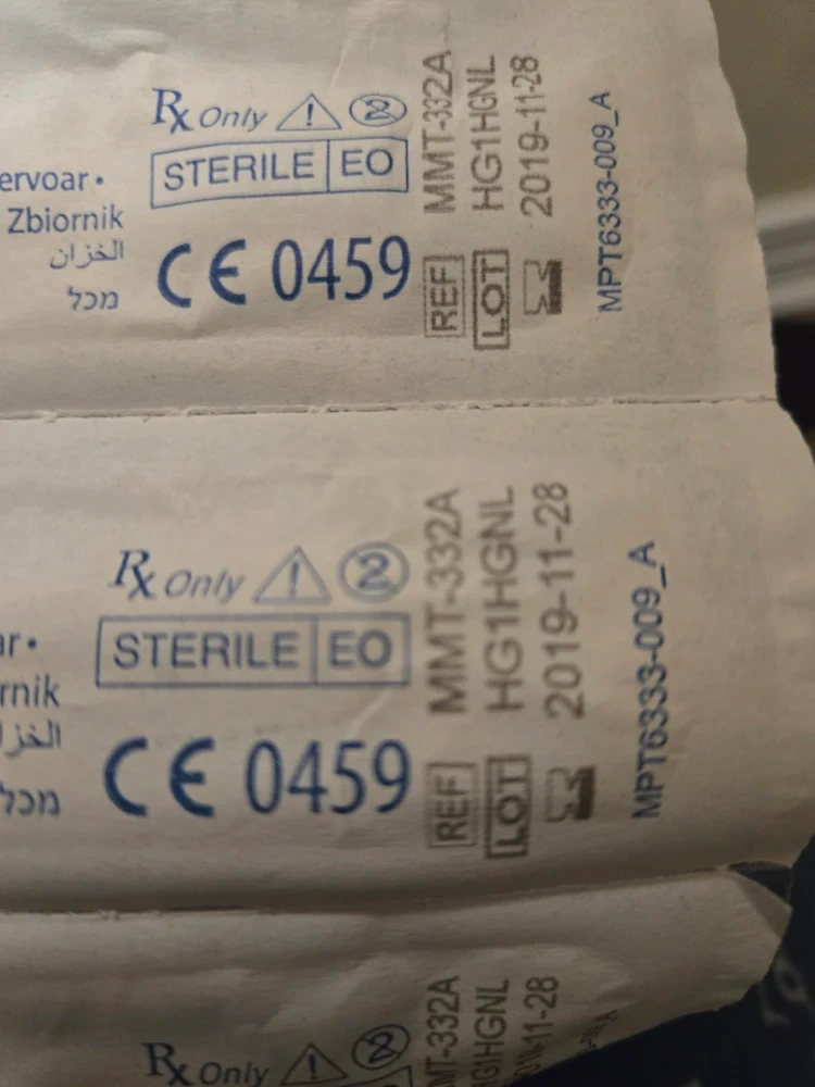 Medtronic minimed reservoir. These are sterile and individually packaged. Lot number HG1HGNL. REF MMT-332A. Expiration date is 2019 November 28